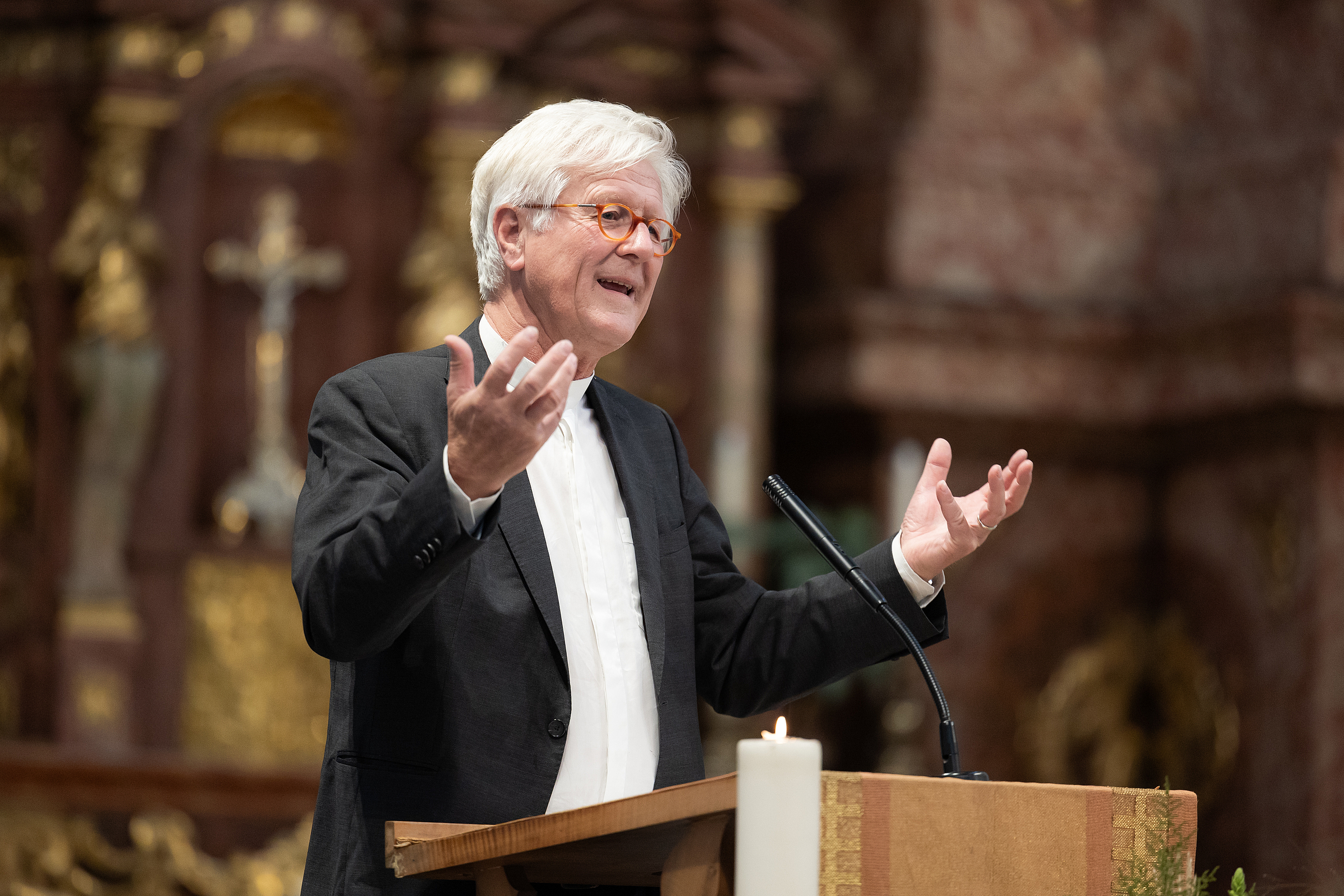 Heinrich Bedford-Strohm, Landesbischof der Evangelisch-Lutherischen Kirche von Bayern und seit einem Jahr Vorsitzender des Zentralrats des Ökumenischen Rats der Kirchen (Weltkirchenrat) sagt von sich, dass sein Herz für die Ökumene schlage. So stellte Nicola Ottiger, Professorin für Ökumene und Leiterin des Ökumenischen Instituts, den Referenten vor. Schnell zeigte sich während der Vorlesung in der Jesuitenkirche Luzern, dass dieser Herzschlag einen hohen Puls auszuhalten vermag. Unter dem Titel «Ökumene der Herzen und Öffentliche Theologie – Einheit der Kirche und Einheit der Welt» lud Heinrich Bedford-Strohm zu einer Auseinandersetzung mit Fragen der Ökumene, die weit über theologische Diskussionen hinausgeht.