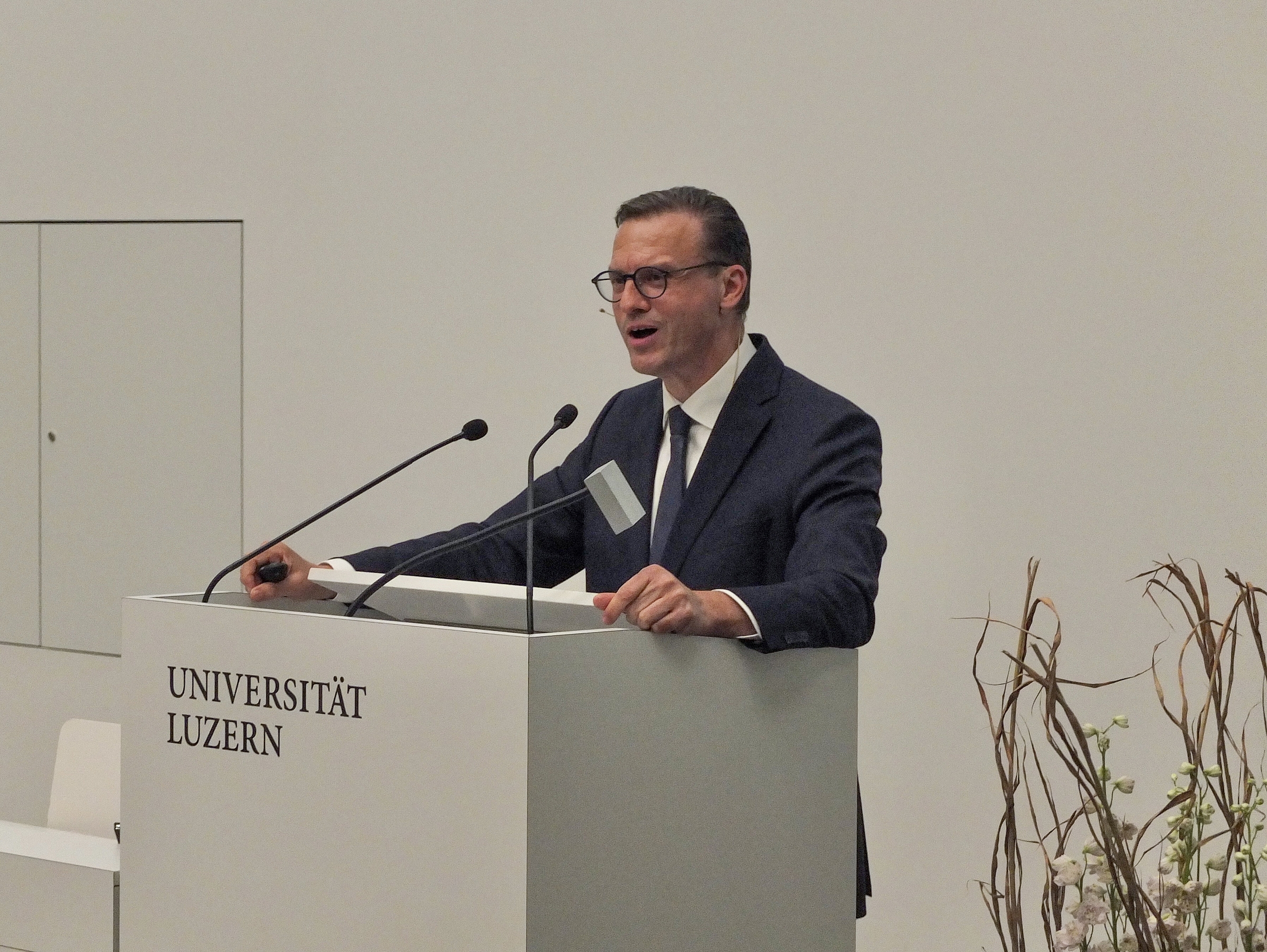 Das Referat vom 31. Mai 2022 trug den Titel «Nachhaltig zuverlässig: Vertrauen ist der Rohstoff des Erfolgs». Eröffnet wurde der Vortrag von Prof. Dr. Christoph A. Schaltegger mit einer kurzen Einführung und Vorstellung. Patrick Frost verdeutlichte die Wichtigkeit von nachhaltigem Vertrauen seitens Kund/innen, Aktionär/innen und Mitarbeitenden. Er stellte dazu mehrere Thesen auf und ging zusätzlich auf die Herausforderungen der Digitalisierung, der Immobilienpolitik sowie auf die Nachhaltigkeitsziele der Swiss Life ein und bot den Zuhörenden verschiedene persönliche Einblicke in sein Schaffen. Dazu gehörten Exkurse aus seinem Privatleben sowie seinem breiten Tätigkeitsfeld als Führungsperson.