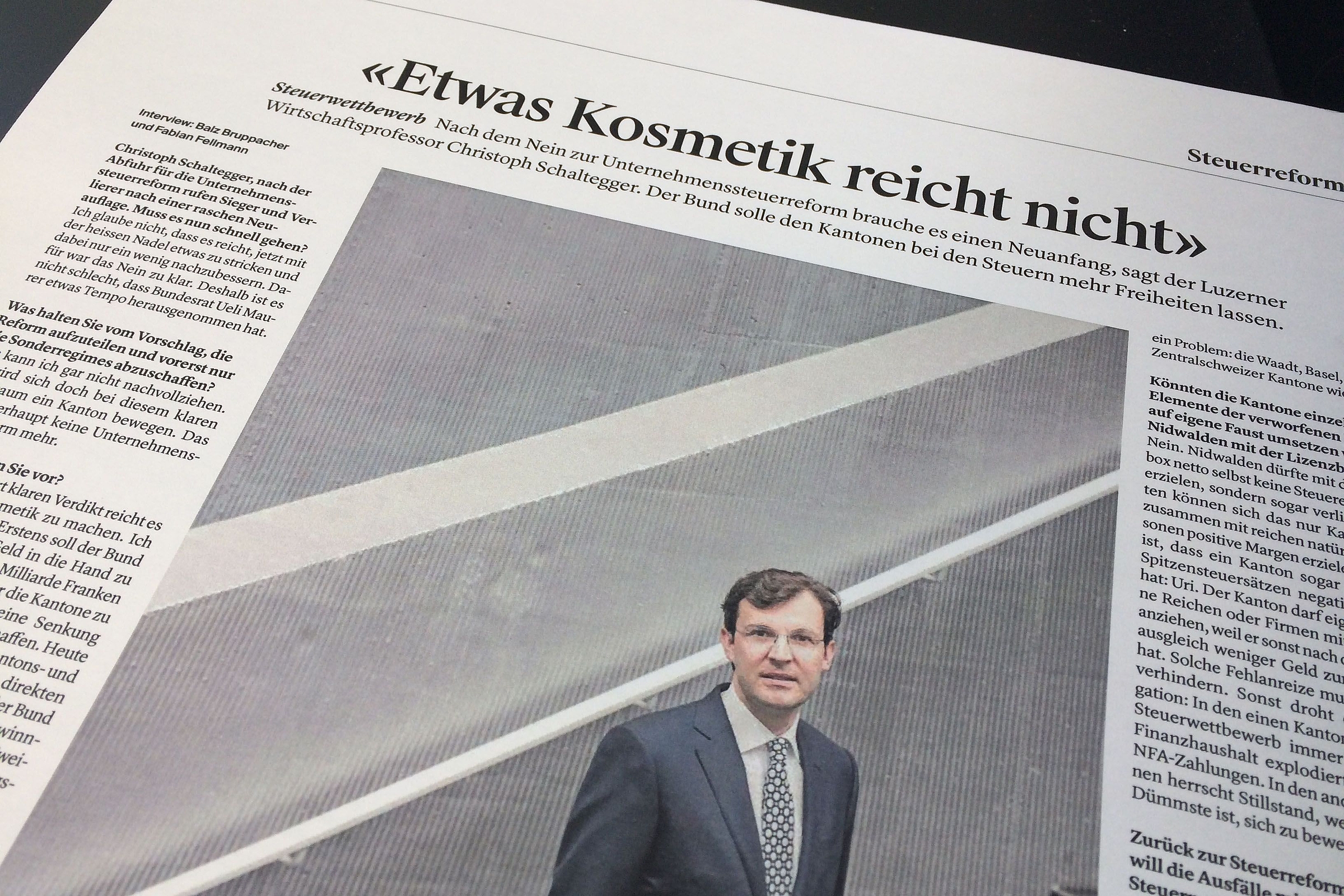 Nach dem Nein zur Unternehmessteuerreform brauche es einen Neuanfang, sagt Prof. Dr. Christoph A. Schaltegger im Interview mit der Zentralschweiz am Sonntag. Der Bund solle den Kantonen bei den Steuern mehr Freiheiten lassen.