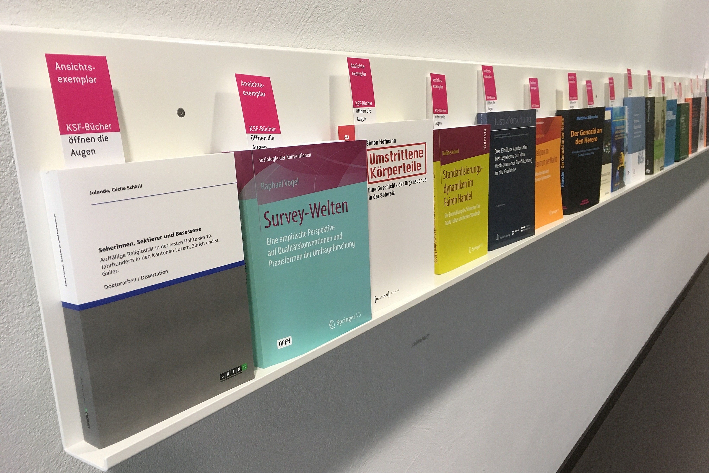 Wissenschaftlerinnen und Wissenschaftler der KSF sind in vielfältigen Forschungsprojekten engagiert. Ein Teil der Forschungsergebnisse ist nun für das Schmökern in der Kaffeepause zugänglich. Auf der "Funiculaire" getauften Bücherleiste zwischen den Büros 3.A35 und 3.A37 finden sich Bücher von Autorinnen und Autoren aus der KSF. Manche der Bücher können mitgenommen werden. Die Lesezeichen weisen Ihnen den Weg. Wer ihre/seine Neuerscheinung für die Funiculaire zur Verfügung stellen möchte, ist herzlich willkommen, ein Exemplar in 3.A35 abzugeben.