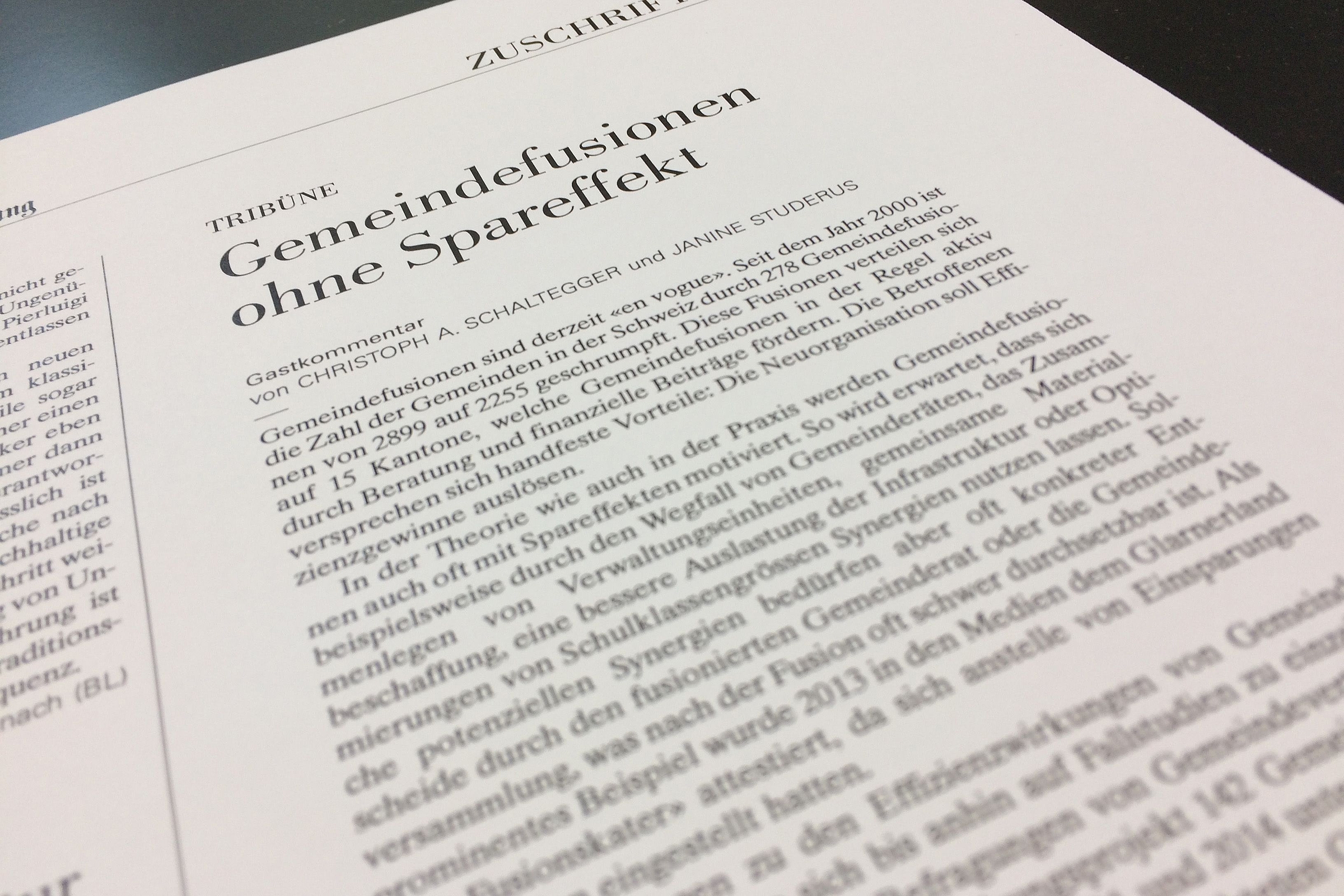 Gastkommentar von Prof. Dr. Christoph A. Schaltegger und Janine Studerus in der NZZ zum Thema Gemeindefusionen.