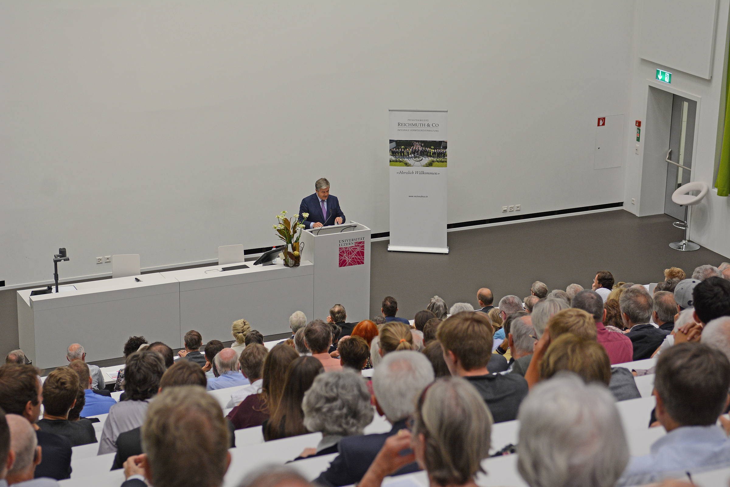 Über 400 Gäste durfte Dr. Josef Ackermann an der Universität Luzern begrüssen. Er referierte zum Thema "Zerstörerische Schöpfung: Lehren aus der Finanzkrise und die Zukunft Europas".