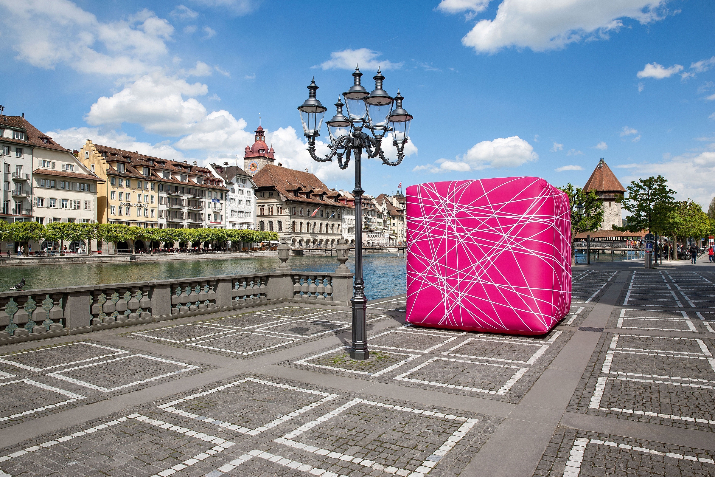 Was das Optische anbelangt, wurden für das diesjährige Frontbild und die Kapitelbilder des Jahresberichts mit einem magentafarbenen Würfel mit einer Kantenlänge von drei Metern im wahrsten Sinne des Wortes auf "Grosses", so die Begleitkampagne in den sozialen Medien, gesetzt. Als dreidimensionale Weiterführung des Uni-Logos konzipiert, erfolgte eine Inszenierung des Kubus an Orten in der Schweiz, die einen konkreten oder thematischen Bezug zu Projekten in der Forschung und Lehre aufweisen.