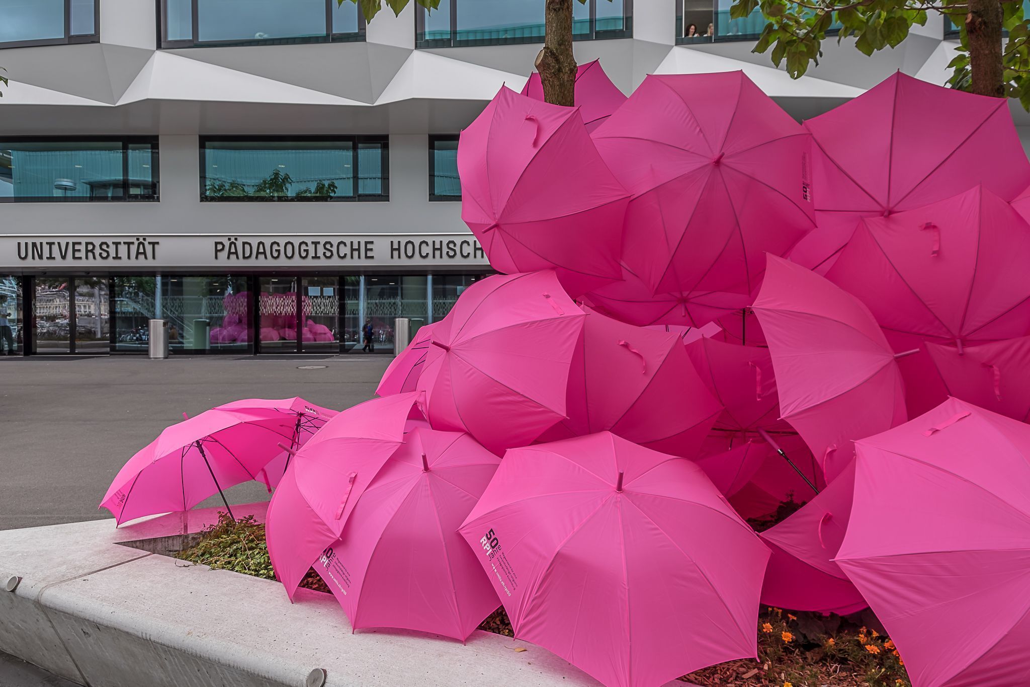 Das Thema "Sehen und gesehen werden" hat sich in vielfacher Weise verwirklicht. Der Zug von der Jesuitenkirche an die Universität - unterbrochen durch pantomimische Performances - war gut öffentlich sichtbar dank der pinkfarbigen Schirme.