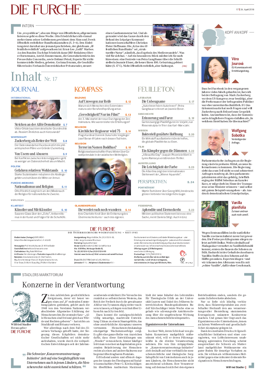 Wilfried Stadler, Herausgeber der österreichischen "Die Furche", zur Schweizer Konzernverantwortungsinitiative.