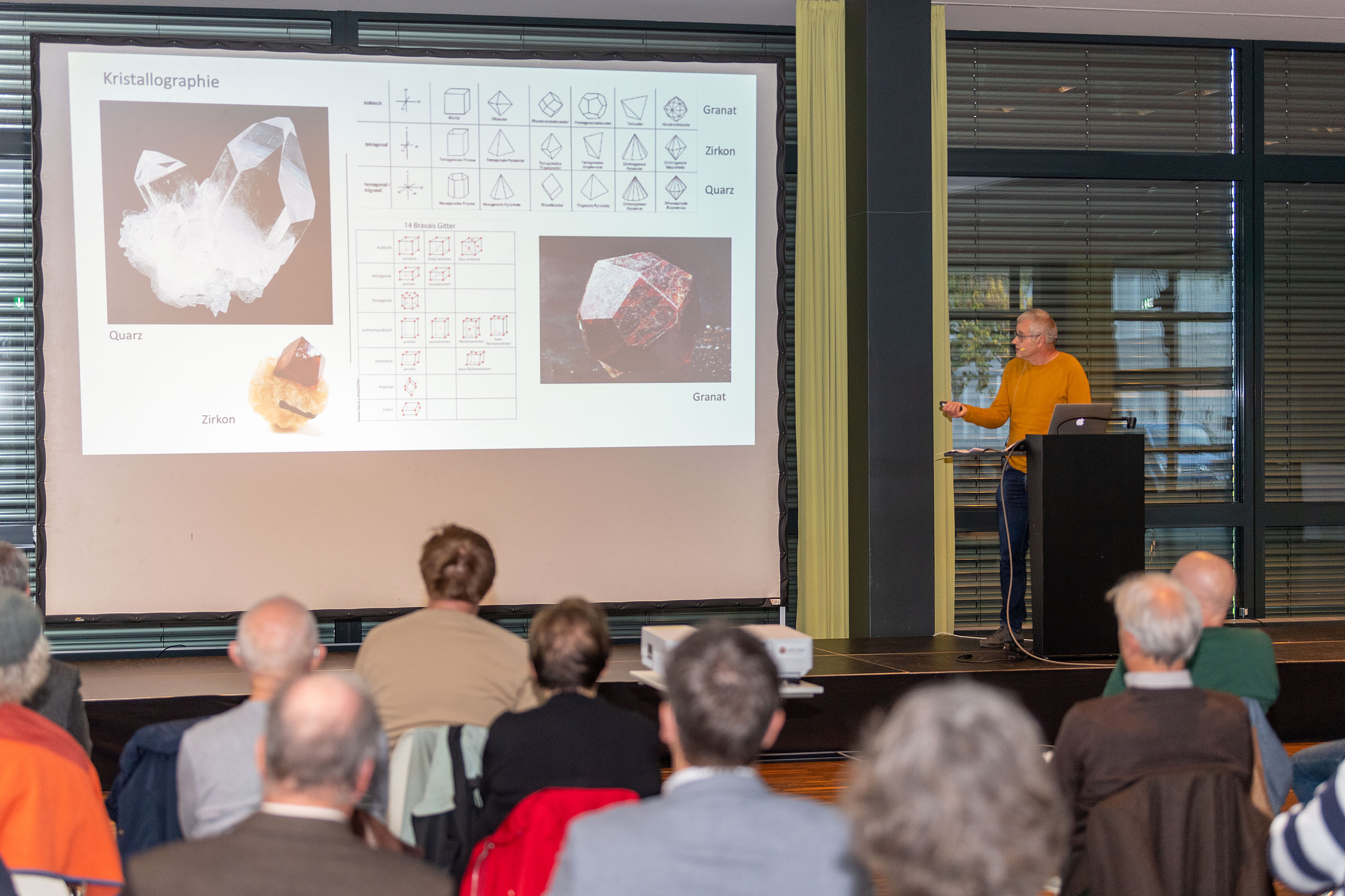 Der Geologe Dr. Peter Spillmann von der Naturforschenden Gesellschaft Uri führte in die naturwissenschaftlichen Grundlagen der Mineralien- und Kristallkunde ein und zeigte anhand der 3.4 Milliarden alten Erdgeschichte die Entstehung der Zerrklüfte (feine Trennflächen im Gestein) und Mineralien auf dem Gebiet des Kantons Uri auf.