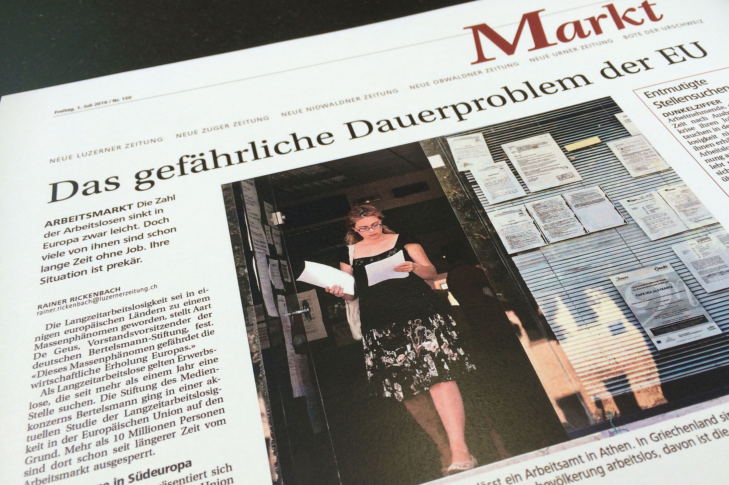 Simon Lüchinger, Professor für Ökonomie, erklärt in der Neuen Luzerner Zeitung, warum die Langzeitarbeitslosigkeit gerade in den südeuropäischen Ländern beunruhigend ist.