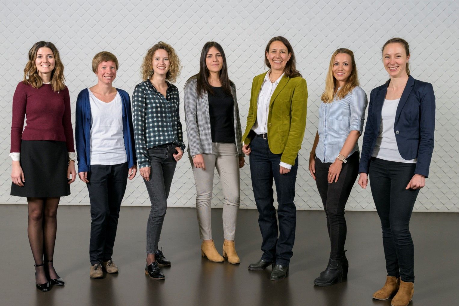 Neben der Forschungsleiterin Prof. Dr. Gisela Michel (3.v.r.) sind von der Universität Luzern Dr. Katharina Roser (2.v.l.), Julia Bänziger (2.v.r.) und Dr. Luzius Mader (nicht auf dem Bild) am Forschungsprojekt beteiligt. Postdoc-Mitarbeiterin, Dr. Katharina Roser, war verantwortlich für die Analysen und gemeinsam mit Julia Bänziger und Dr. Luzius Mader für das Sammeln der Daten.