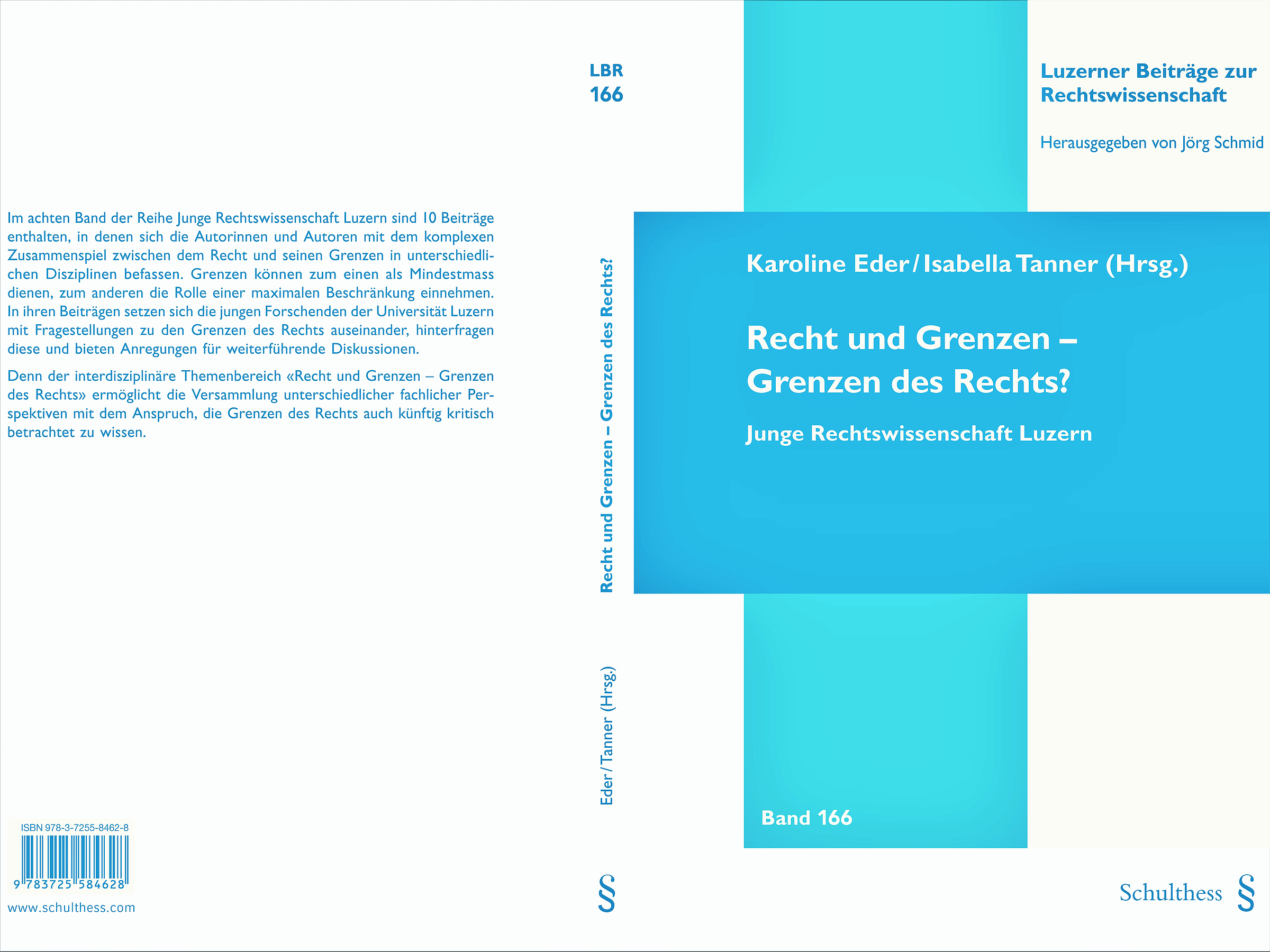 Der Band mit dem Titel «Recht und Grenzen – Grenzen des Rechts?» vereint die Beiträge von insgesamt 10 Assistierenden, die aktuell an der Rechtswissenschaftlichen Fakultät tätig sind oder dies vor kurzem waren. Er zeichnet somit ein schönes Bild der Schaffenskraft des Luzerner Nachwuchses. Inhaltlich befassen sich die Texte mit dem komplexen Zusammenspiel zwischen dem Recht und seinen Grenzen in unterschiedlichen Disziplinen. Grenzen können zum einen als Mindestmass dienen, zum anderen die Rolle einer maximalen Beschränkung einnehmen. In ihren Beiträgen setzen sich die jungen Forschenden mit Fragestellungen zu den Grenzen des Rechts auseinander, hinterfragen diese und bieten Anregungen für weiterführende Diskussionen. Der vorliegende, von Karoline Eder und Isabella Tanner herausgegebene Band ist bereits der achte aus der Unterreihe «Junge Rechtswissenschaft Luzern», einem Forum für wissenschaftliche Beiträge von Assistierenden der Luzerner Rechtsfakultät. Wir gratulieren zum Gemeinschaftswerk und wünschen eine spannende Lektüre!
