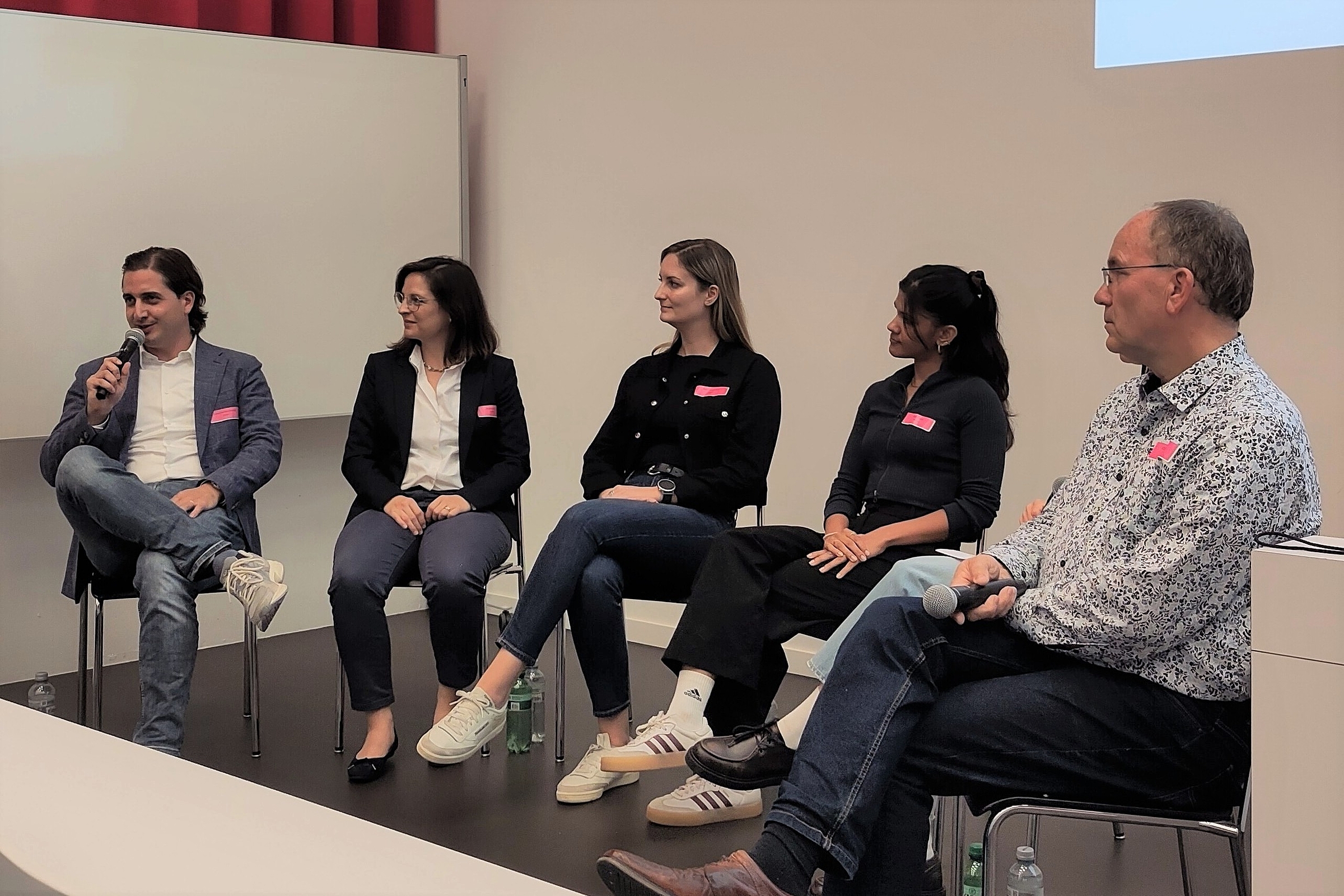 In der darauffolgenden Panel-Diskussion sassen nebst Alexander Blumenthal drei weitere Absolventinnen des Masters in Health Sciences: Karin Mayer, Fachverantwortliche Gesundheitsförderung und Prävention beim Kanton Obwalden, Patricia Lampart, Wissenschaftliche Mitarbeiterin an der Universität Luzern und Angela Horn, Mitarbeiterin Qualitätsmanagement beim Spital Thun. Sie erzählten von ihren Erfahrungen, ihrem Arbeitsalltag sowie persönlichen «Best-Practices» für den Bewerbungsprozess. Einig waren sich alle darin, dass persönliche Kontakte und die Schaffung eines Netzwerks die Chance auf Erfolg bei der Stellensuche erheblich erhöhen können. Luisa Koller, Studiengangsmanagerin im Master in Health Sciences und Moderatorin des Anlasses erwähnte in diesem Zusammenhang öffentliche Anlässe wie die Faculty Lectures, die auch gute Möglichkeiten zum Netzwerken bieten - insbesondere im Rahmen der Austauschmöglichkeiten beim Apéro.