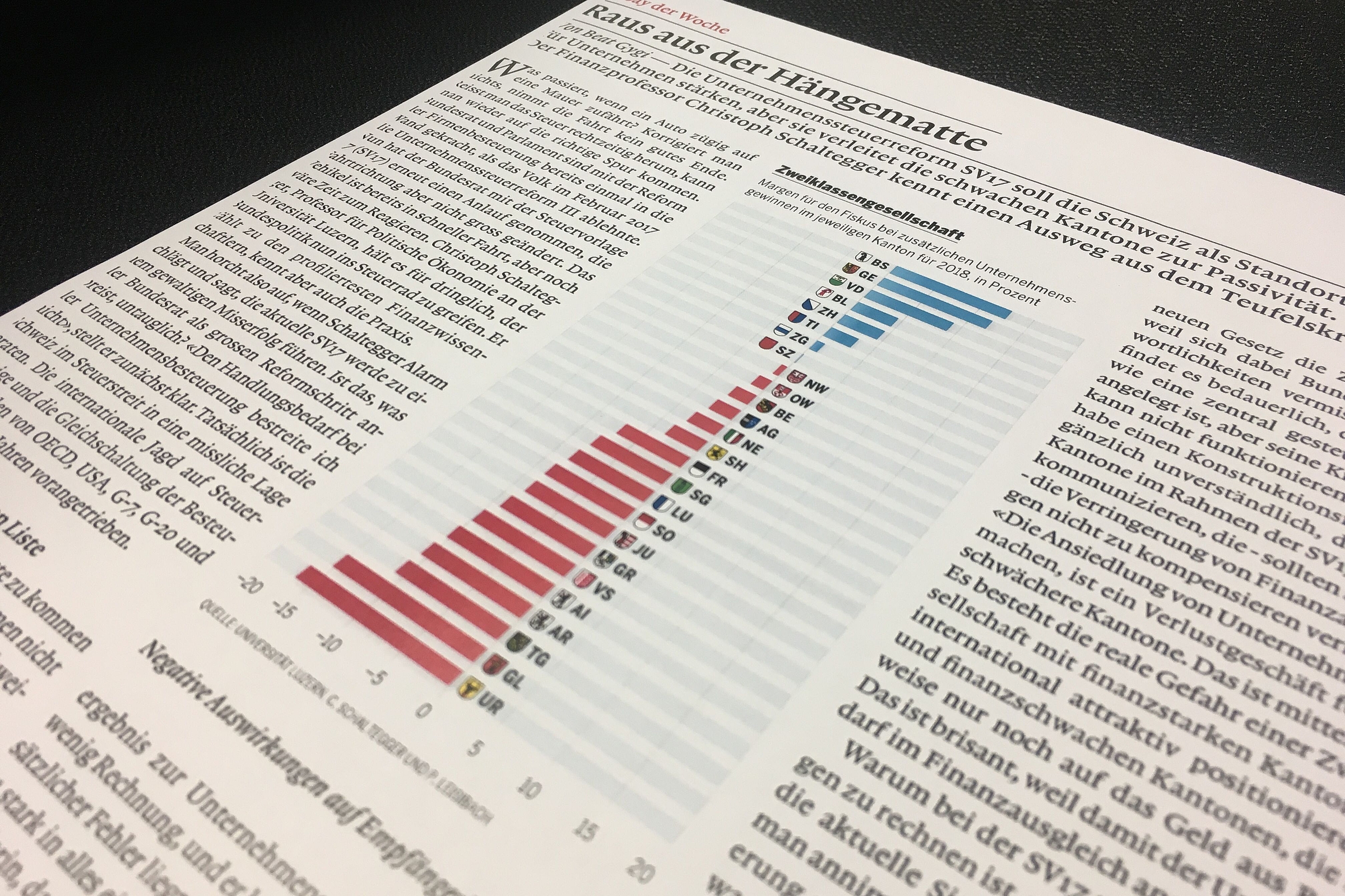 In der Weltwoche vom Donnerstag, 26. April 2018 nahm Prof. Dr. Christoph A. Schaltegger Stellung zur Unternehmenssteuerreform SV17.