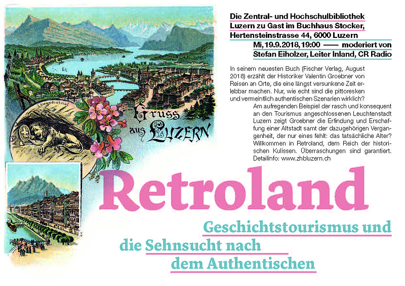 Am 19. September um 19.00 Uhr findet im Buchhaus Stocker eine Lesung und ein Gespräch zu Valentin Groebners neustem Buch "Retroland" statt. Der Historiker nimmt eine Sonderform des Tourismus unter die Lupe und betrachtet dabei auch die Erschaffung der Luzerner Altstadt.