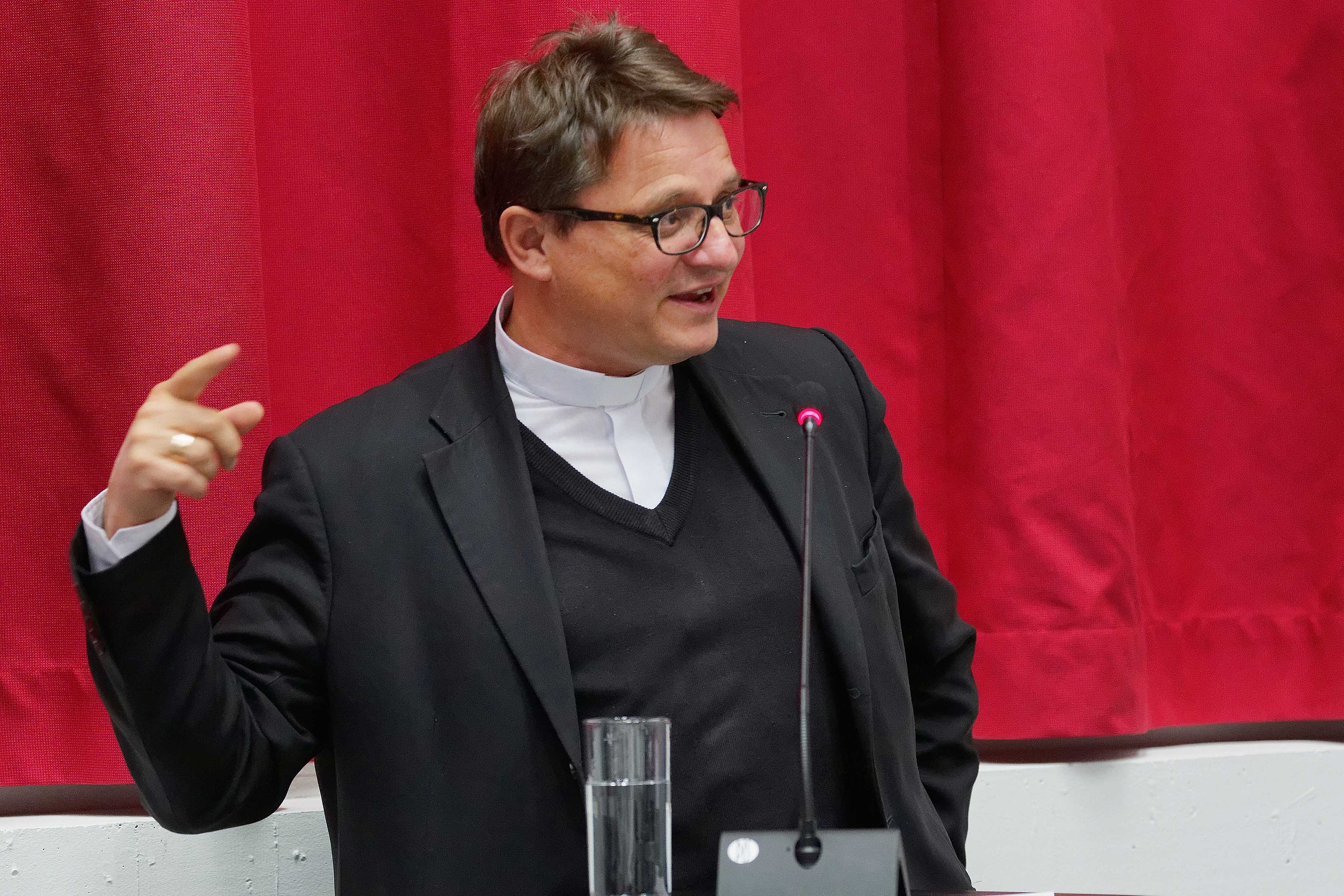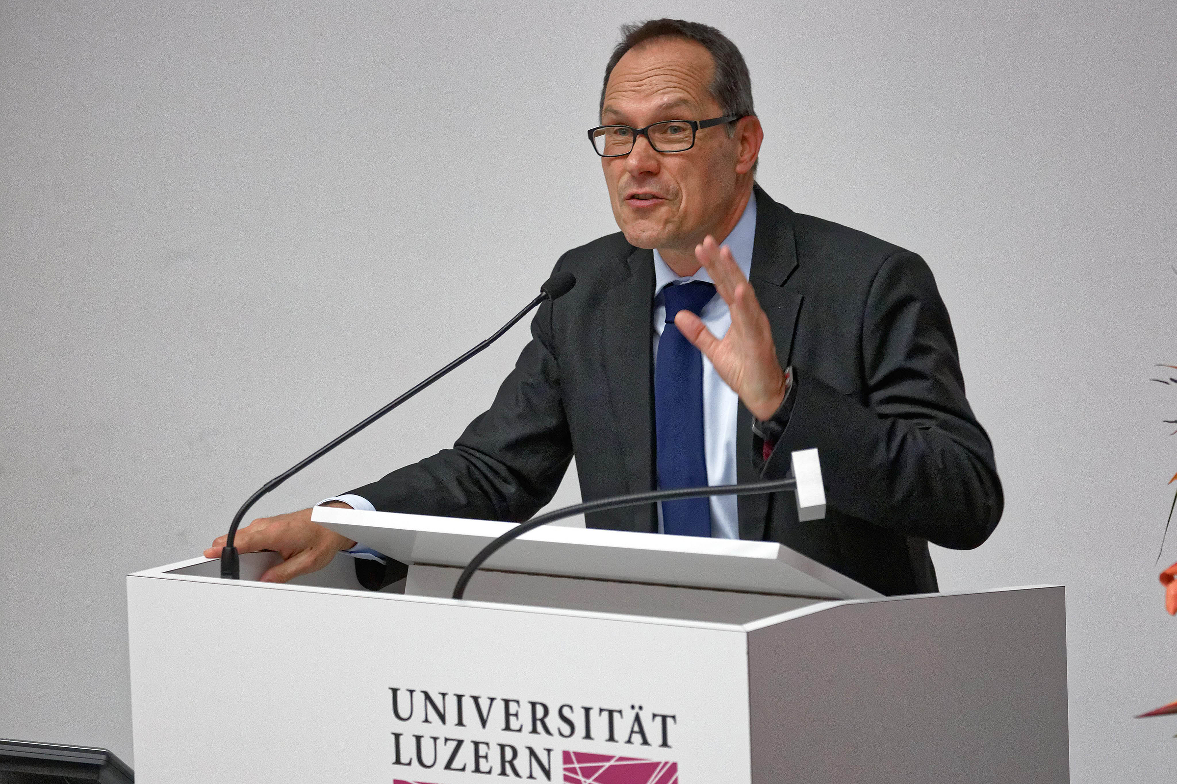 Nach den Konklusionen von den drei Impulsreferenten schloss Prof. Dr. Martin Mark, Dekan der Theologischen Fakultät, die Veranstaltung und lud zum Apéro ein.