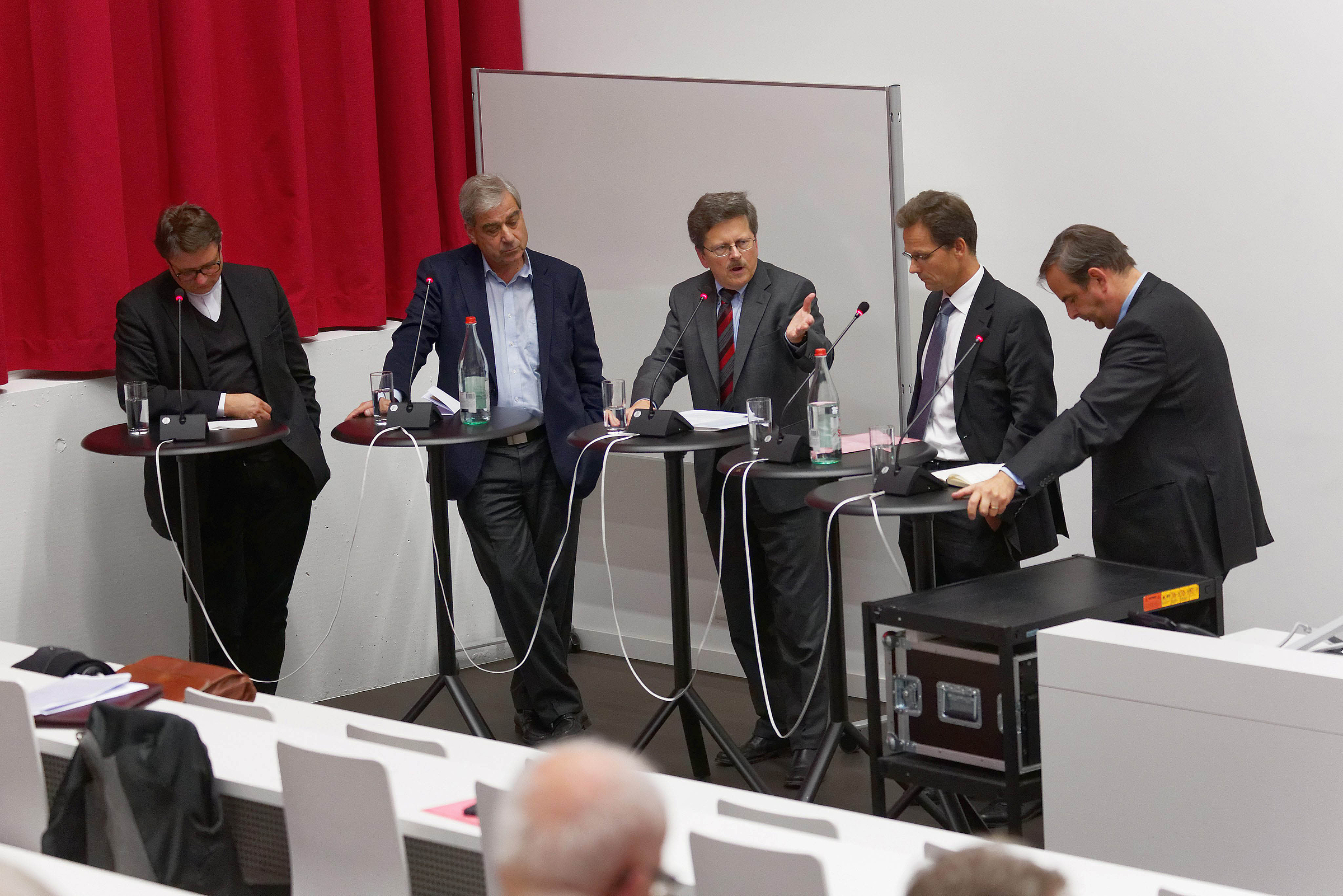 Beim anschliessenden Podium diskutierten Bischof Dr. Dr. Felix Gmür, Nationalrat Dr. Gerhard Pfister, Dr. Dr. Rudolf Wehrli (VRP Clariant) und Andreas Kressler, Direktor der HEKS unter der Moderation von Prof. Dr. Stephan Wirz von der Paulus Akademie.
