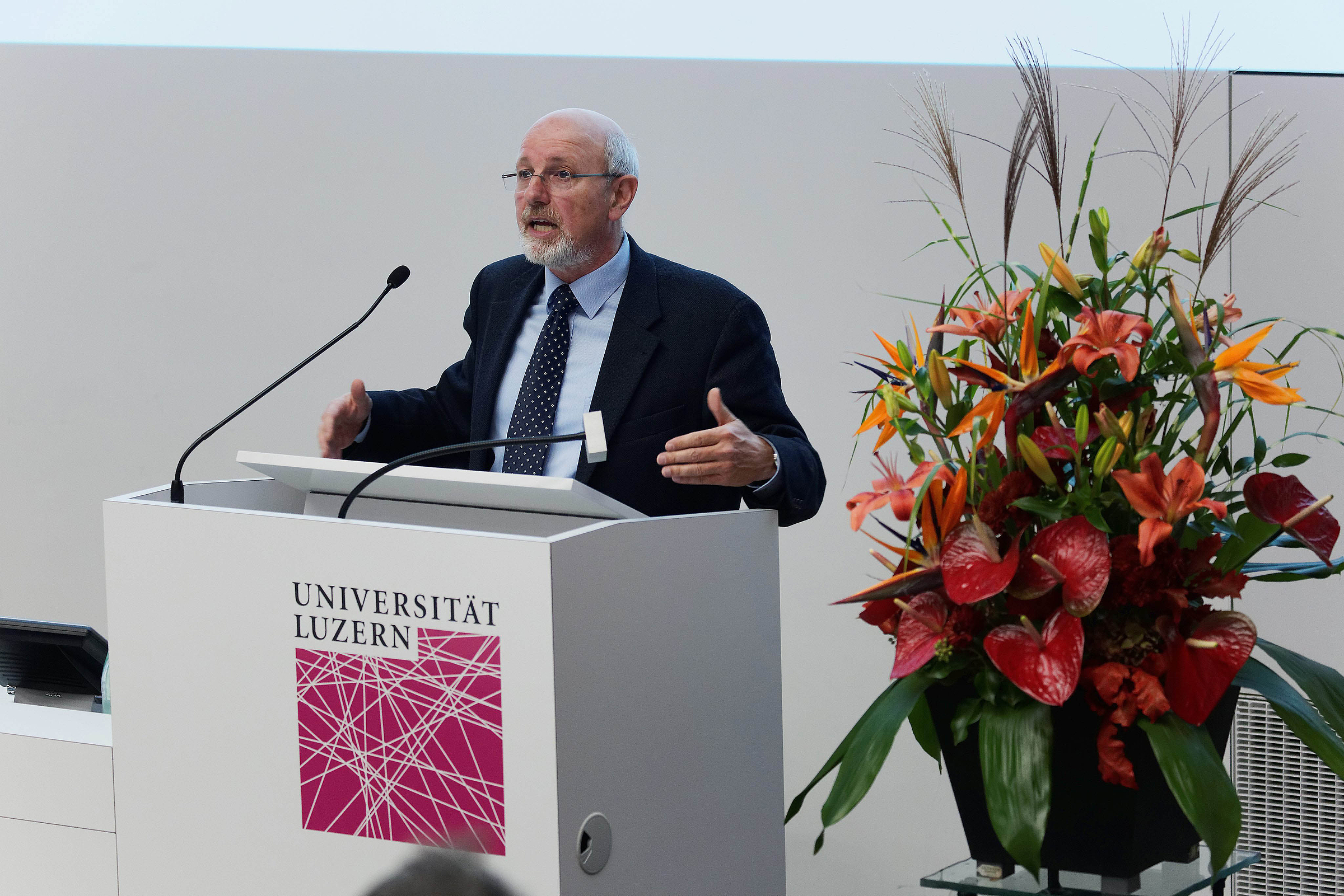 Prof. Dr. Christoph A. Schaltegger, Dekan der neuen Wirtschaftswissenschaftlichen Fakultät, begrüsste die Anwesenden im Hörsaal 9. Im Anschluss folgten Impulsreferate von Prof. Dr. Joachim Wiemeyer, Professor der Universität Bochum zu den Sozialethischen Positionen von Papst Franziskus, von Prof. Dr. Stefan Grotefeld von der Evangelisch-reformierten Landeskirche Zürich mit der kirchlichen Sicht zum Thema sowie ein Referat von Dr. Gerhard Schwarz, Publizist und Adjunct Fellow Avenir Suisse zum Thema aus ökonomischer Sicht.