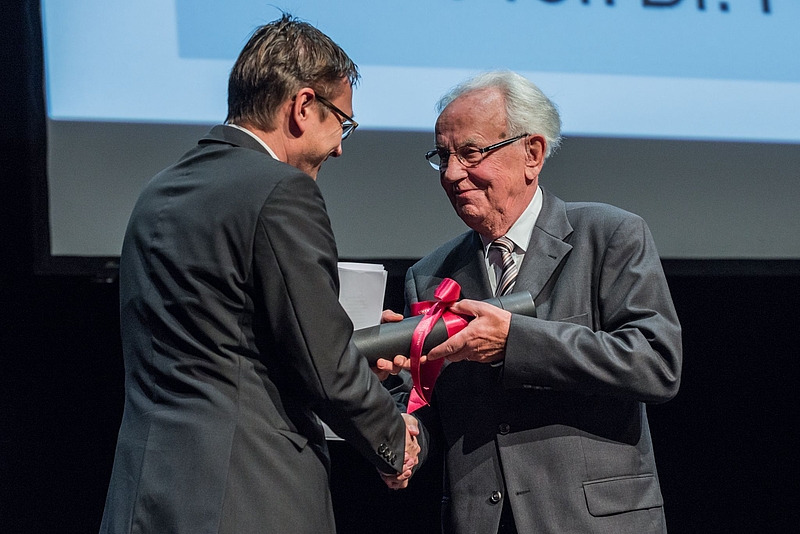 Anlässlich der Verleihung der Ehrendoktorwürde am Dies Academicus vom 7. November 2013 würdigte Prof. Dr. Felix Bommer, Dekan der Rechtswissenschaftlichen Fakultät, Günter Stratenwerth, emeritierter Professor der Universität Basel, als Rechtswissenschaftler, «der wie kaum ein anderer im letzten Jahrhundert und bis heute das Schweizer Strafrecht geprägt und der Schweizer Strafrechtswissenschaft auch über die Landesgrenzen hinaus ein Gesicht gegeben hat».