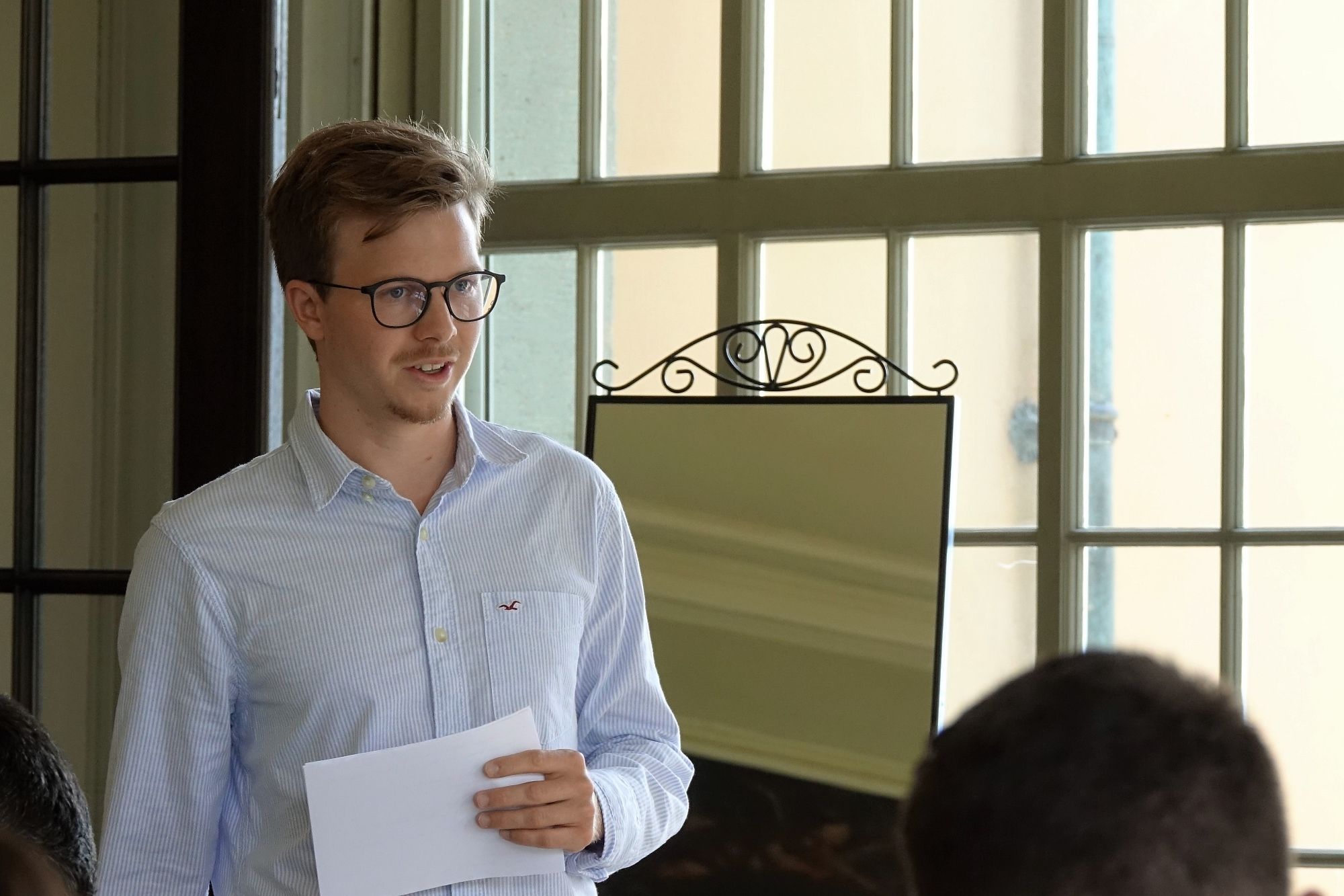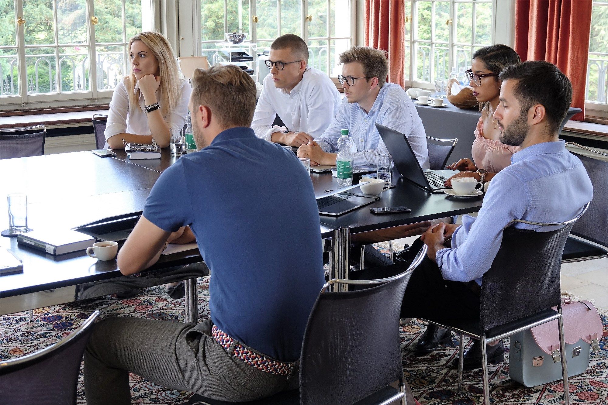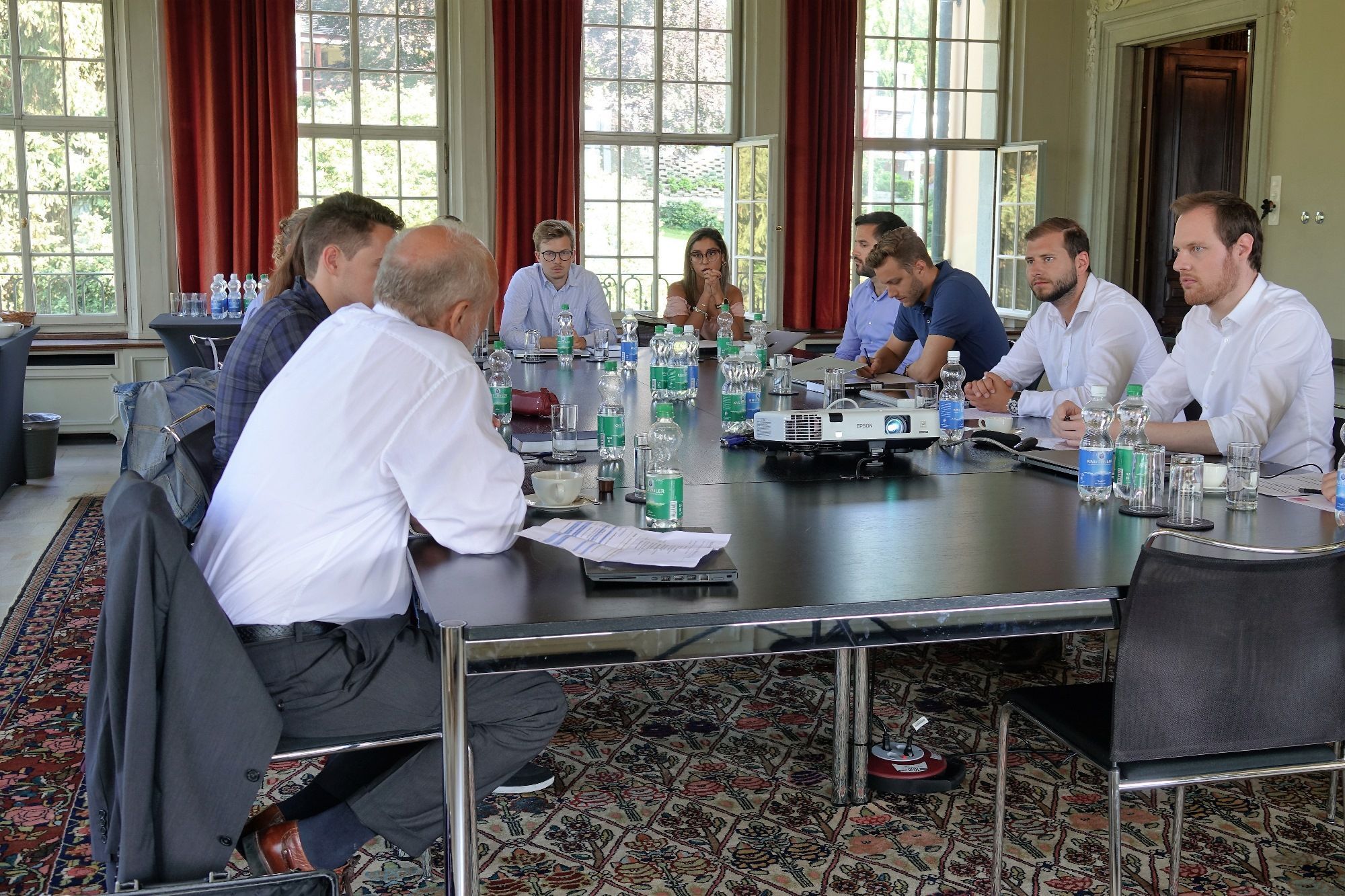Heute sind ausgewählte Wirtschaftsstudierende in der Villa St. Charles in Meggen zu Besuch. Sie diskutieren mit unserem Gastprofessor Prof. Dr. Dr. h.c. mult. Hans-Werner Sinn über die Europäische Währungsunion. In Zweiergruppen stellen sie verschiedene Reformvorschläge aus Professor Sinns Buch "Der schwarze Juni" vor, hinterfragen sie kritisch und präsentieren ihre Ideen.