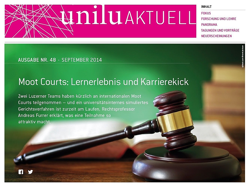 Den "Fokus" bilden diesmal Moot Courts – fiktive Gerichtsverfahren, in denen Teams von Studierenden gegeneinander antreten. Neben einem einschätzenden Interview mit Prof. Dr. Andreas Furrer zeigen zwei Erfahrungsberichte die spezielle Lern- und Lebenserfahrung aus der Sicht von Teilnehmenden.