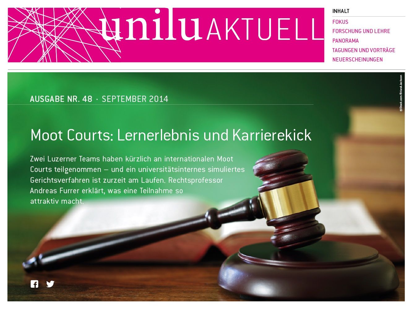 Den "Fokus" bilden diesmal Moot Courts – fiktive Gerichtsverfahren, in denen Teams von Studierenden gegeneinander antreten. Neben einem einschätzenden Interview mit Prof. Dr. Andreas Furrer zeigen zwei Erfahrungsberichte die spezielle Lern- und Lebenserfahrung aus der Sicht von Teilnehmenden.
