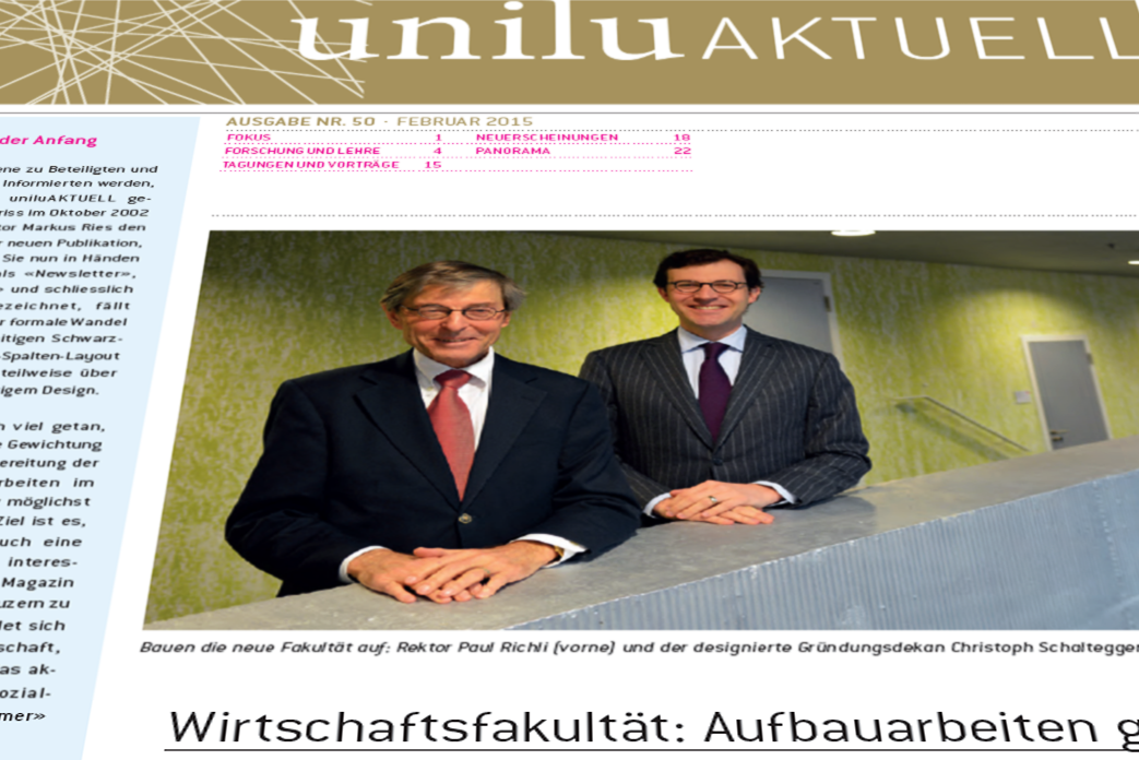 Im "Fokus" dieser Jubiläumsausgabe des Uni-Magazins geht es um die geplante Wirtschaftsfakultät: Rektor Paul Richli und der designierte Gründungsdekan Christoph Schaltegger zeigen die nächsten Schritte nach dem Ja an der Urne auf.