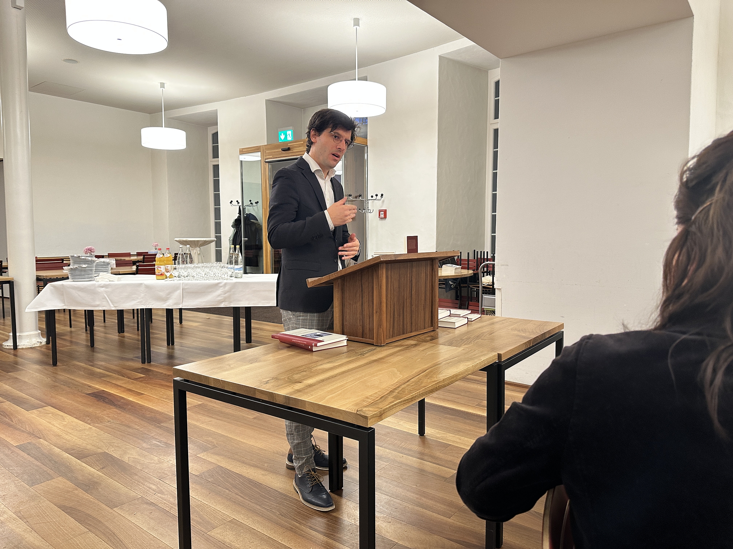 Martin Allemann, Geschäftsführer der Stiftung der Geschichte Kloster Muri, konnte anschliessend die beiden Monografien, die in der Reihe “Murenser Monografien” erschienen sind, den Vertreter:innen der Ordensgemeinschaften überreichen.