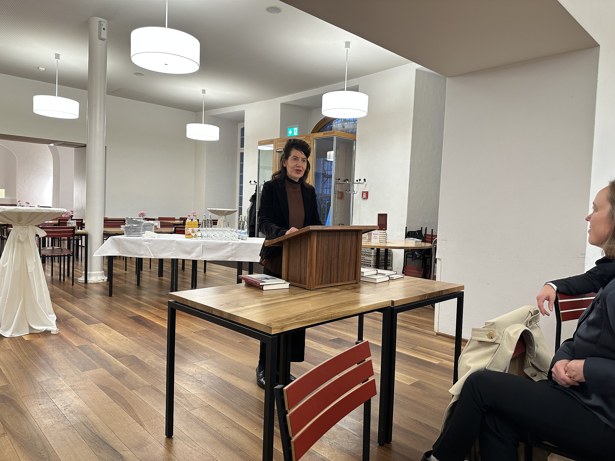 Prof. em. Dr. Markus Ries dankte in seiner Ansprache den beiden Forschenden für ihren unermüdlichen Einsatz. Die Wichtigkeit, sich mit Ordensgemeinschaften, dem Zusammenleben im Kloster und den sich wandelnden Lebensbedingungen auseinanderzusetzen zeigten, so Markus Ries, bereits die vergangenen Forschungsprojekte, die Esther Vorburger erfolgreich durchführen konnte - so etwa zu religiösen Frauengemeinschaften in der Ostschweiz oder zu Diakonissen und Ordensschwestern im 20. Jahrhundert. Die Oral-History-Methode, also die wissenschaftliche Datenerhebung durch Interviews, anzuwenden, habe sich dabei aus den Erfahrungen im Kontakt mit den Klöstern ergeben. Esther Vorburger berichtete von den schönen Begegnungen, die in ruhigen Momenten beim Kaffetrinken mit den Ordensschwestern entstanden waren. Dass viele der Schwestern zunächst meinten, sie hätten eigentlich nichts zu erzählen, sage viel über die Bescheidenheit der Frauen aus, so Esther Vorburger. Sie sprach allen Schwestern ihren grossen Dank für die Bereitschaft aus, sich auf das Projekt einzulassen, namentlich den anwesenden Vorsteherinnen des Klosters Fahr, Priorin Irene Gassmann, und der Abtei Hermetschwil, Äbtissin Angelika Streule.