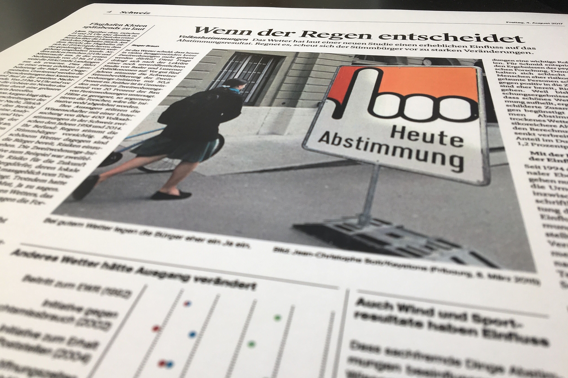 Die Studie von Lukas D. Schmid, Assistenzprofessor an der Wirtschaftswissenschaftlichen Fakultät, Armando N. Meier und Alois Stutzer sagt, dass das Wetter einen erheblichen Einfluss auf Abstimmungsresultate hat. Denn wenn es regnet, scheut sich der Stimmbürger vor zu starken Veränderungen.