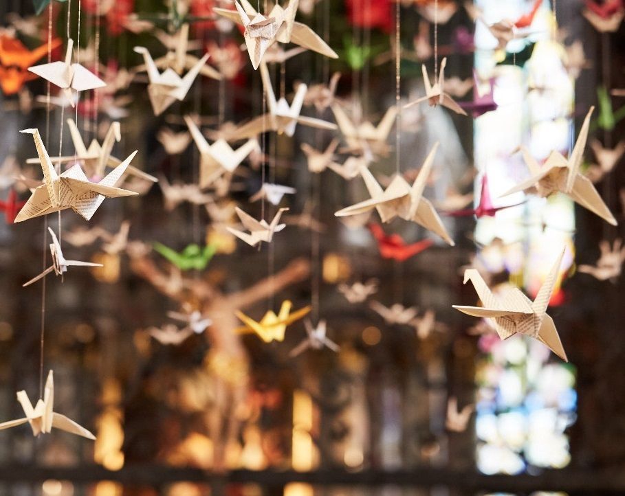 Bild: «1000 Kraniche für den Frieden» der Pfarrei St. Maria zu Franziskanern, Luzern (Projektverantwortliche: Simone Marchon, Foto: Daniela Kienzler)