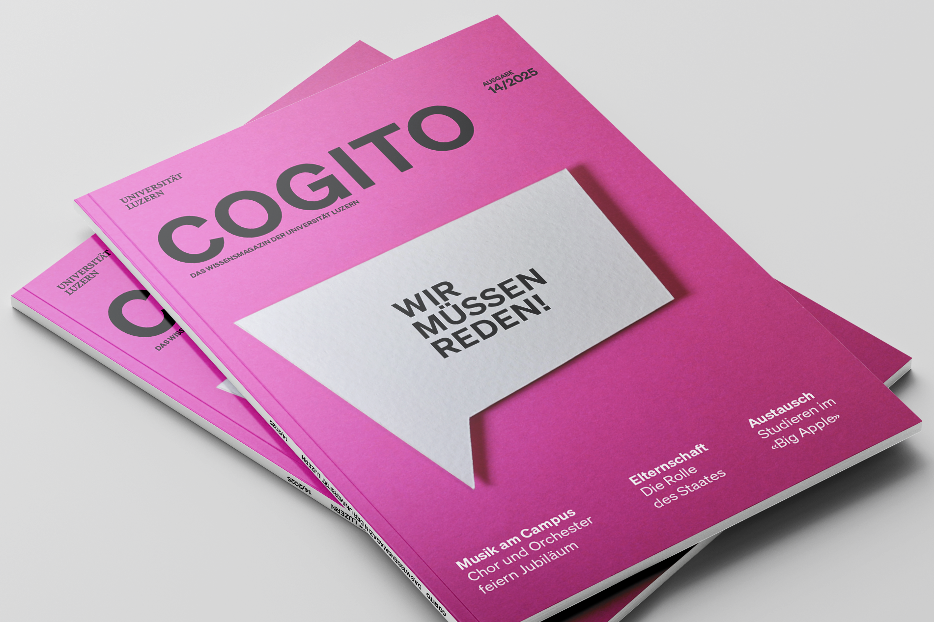 «cogito» erscheint in gedruckter Form das nächste Mal im Herbst – dann, wenn die Universität Luzern als humanwissenschaftllich fokussierte Hochschulinstitution am 25. Oktober offiziell ihr 25-jähriges Bestehen feiert und die interessierte Bevölkerung zum Tag der offenen Tür einlädt (weitere Infos folgen). Die Zeitschrift ist kostenlos abonnierbar (auch digital als Newsletter) und steht an verschiedenen Orten im zentral neben dem Bahnhof und dem KKL Luzern gelegenen Gebäude der Universität zum Mitnehmen bereit.
