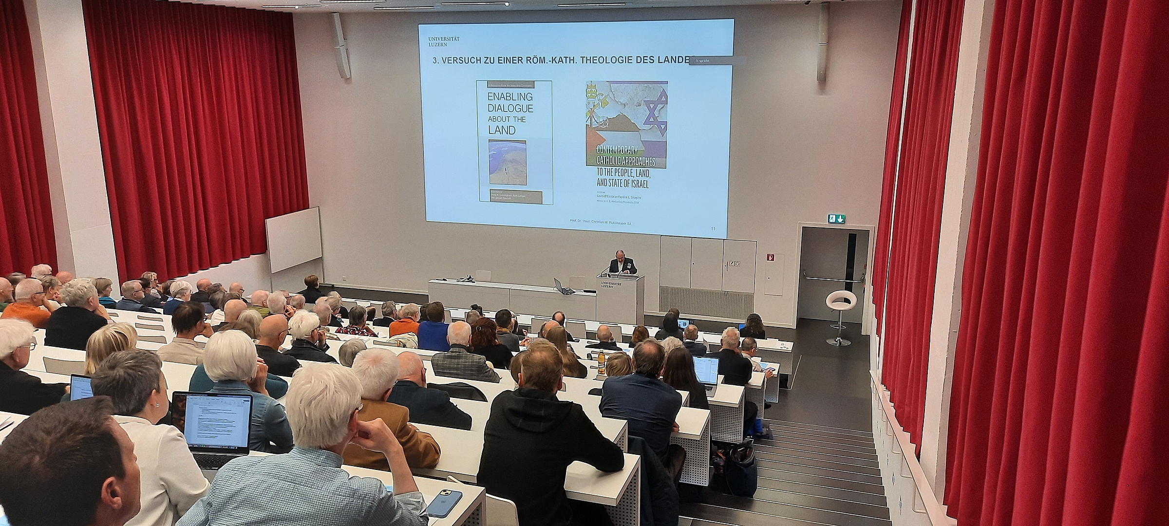 In seiner Vorlesung thematisierte Professor Rutishauser die Rolle des Landes Israel in der katholischen Theologie sowie im jüdisch-christlichen Dialog. Er ging der Frage nach, weshalb das Zweite Vatikanische Konzil in seiner Erklärung Nostra aetate zwar das Judentum in neuer Weise theologisch würdigt, das Heilige Land jedoch nicht thematisiert – und welche Bedeutung dieser Umstand für das gegenwärtige interreligiöse Gespräch hat. Dabei plädierte er für eine theologische Weiterentwicklung, die das Land Israel als zentralen Bestandteil jüdischer Identität ernst nimmt und somit die Basis für einen vertieften Dialog legt. Zugleich warb er für einen weiten, offenen Zugang zum interreligiösen Gespräch, der neben dem jüdisch-christlichen Verhältnis auch den Austausch mit weiteren Religionen fördert – ohne dabei die besondere Beziehung zwischen Christentum und Judentum aus dem Blick zu verlieren.