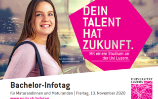 Am Freitag, 13. November 2020 findet an der Universität Luzern der Bachelor-Infotag statt. Für alle, die sich für ein Wirtschaftsstudium interessieren, bietet die Wirtschaftswissenschaftliche Fakultät eine Informationsveranstaltung zum Studium, Schnuppervorlesungen sowie Fragerunden und persönliche Beratung. Der diesjährige Anlass wird aufgrund der Covid-19 Pandemie unter speziellen Bedingungen durchgeführt: Die Veranstaltungen und Schnuppervorlesungen am Vormittag finden online via Zoom statt. Am Nachmittag haben Sie die Gelegenheit, sich vor Ort über das Studium zu informieren und im Rahmen von Campusführungen die Universität Luzern kennenzulernen. Zum detaillierten Programm