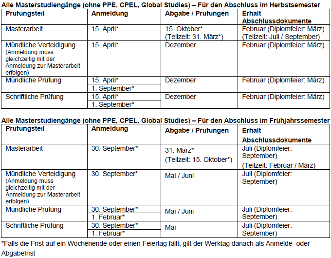 - Achtung: Für MA PPE, CPEL und Global Studies gelten andere Termine