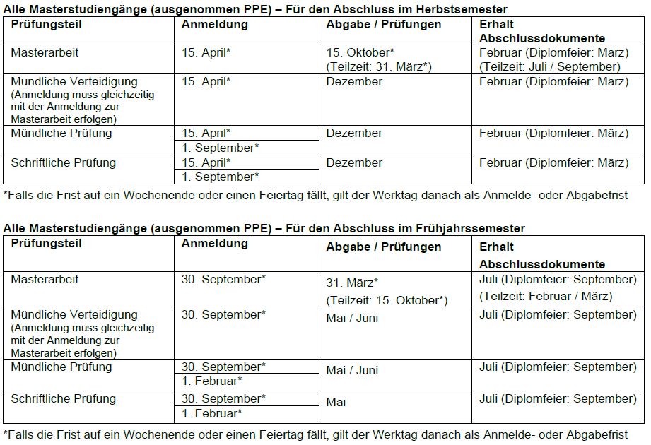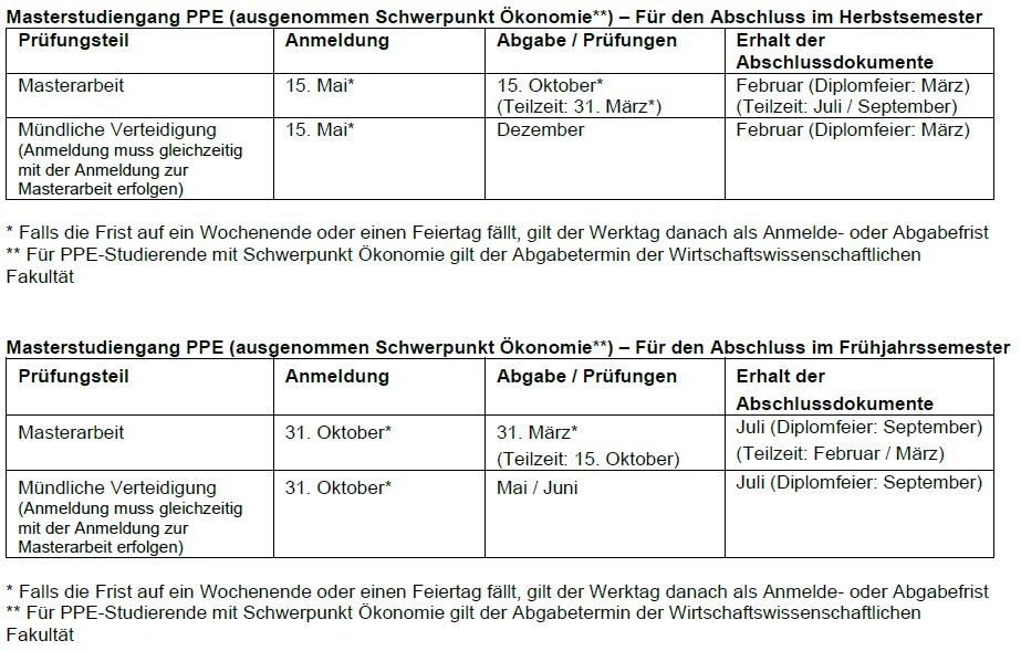 - Achtung: Für MA PPE, CPEL und Global Studies gelten andere Termine