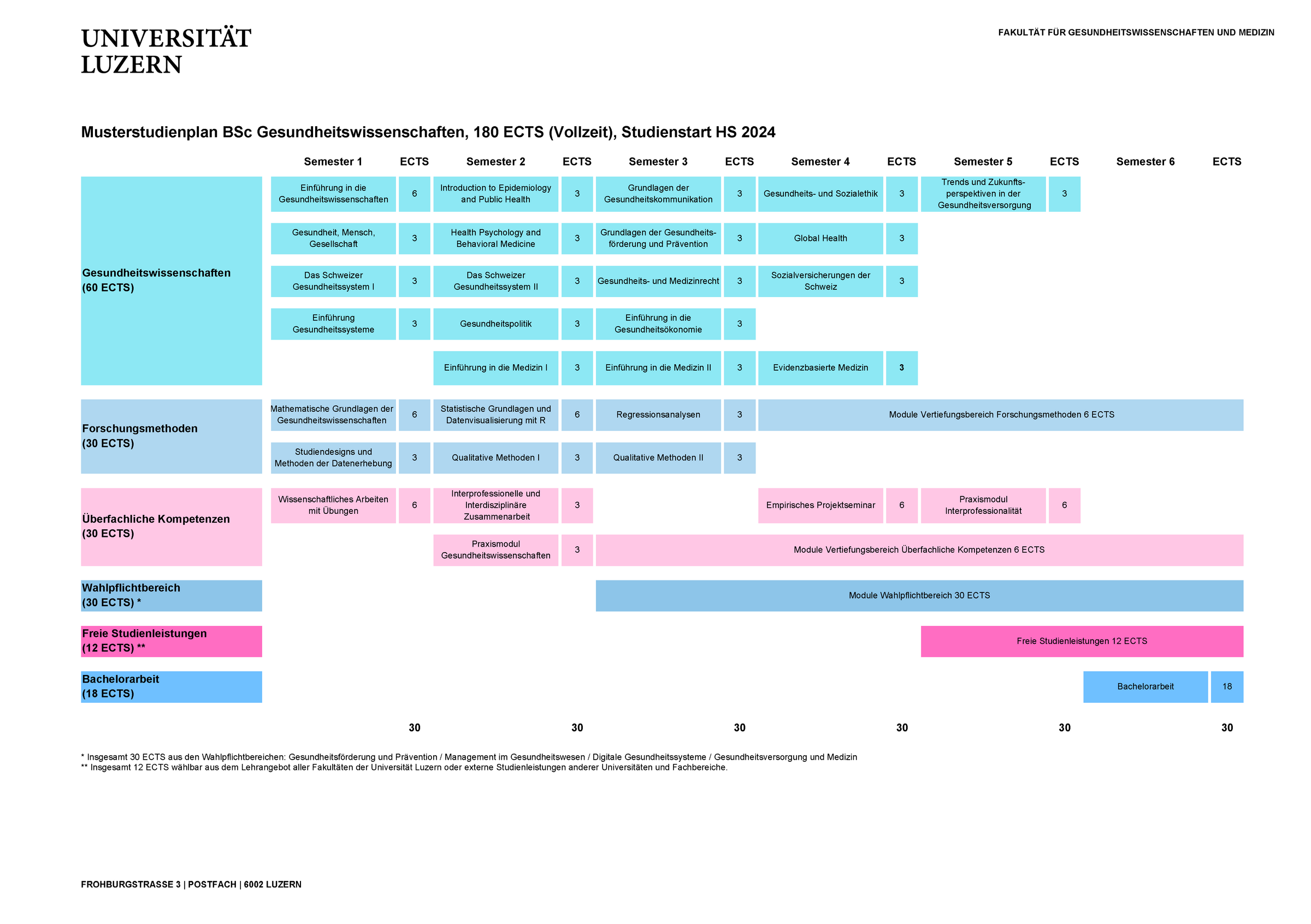 | Abschluss | Bachelor of Science in Gesundheitswissenschaften |