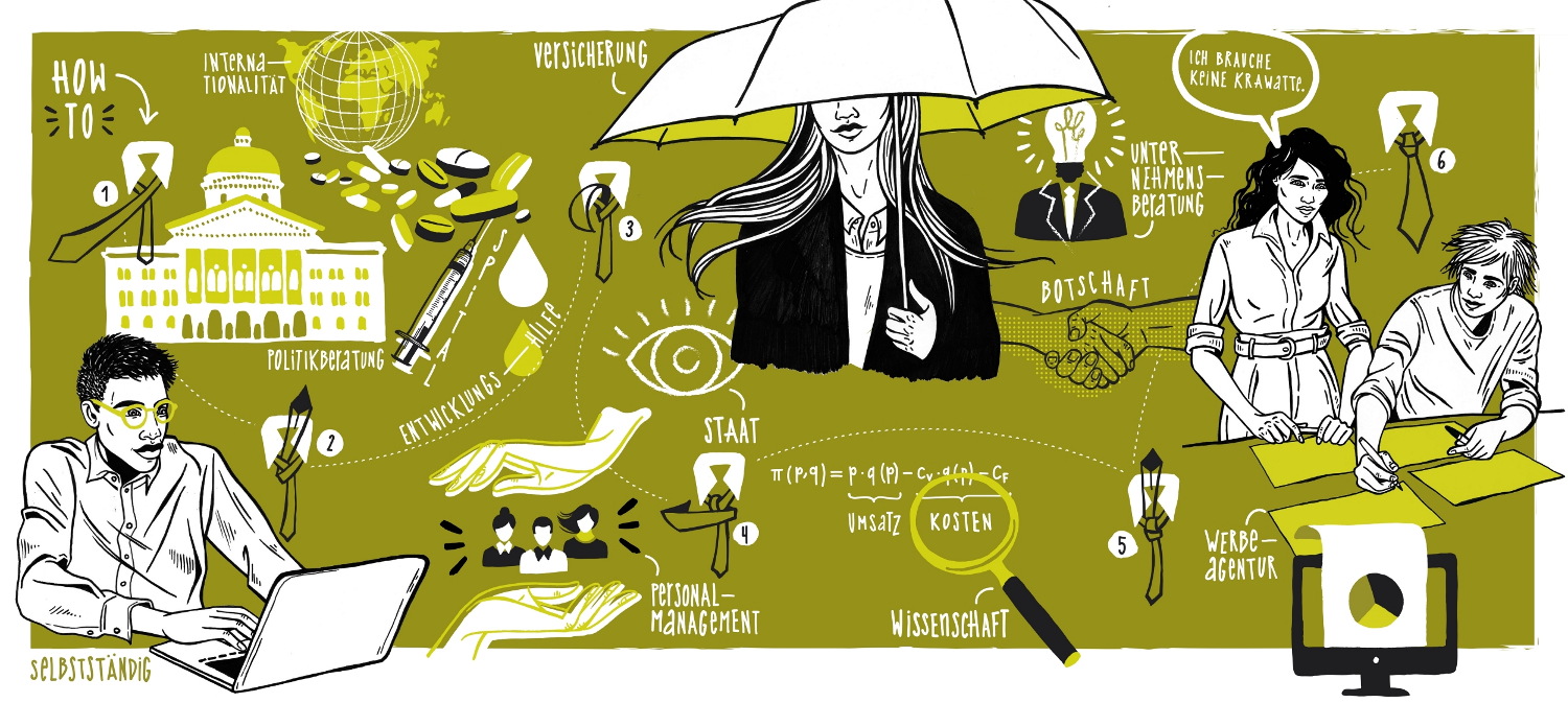 Ebenfalls bieten sich diverse Tätigkeitsbereiche in Bundes- und Kantonsverwaltungen, in internationalen Organisationen oder bei NGOs an. Natürlich können Sie auch den Schritt in die Selbstständigkeit wagen und Ihr eigenes Unternehmen gründen. Der Bachelorabschluss bildet zudem eine ideale Grundlage für den Master in Wirtschaftswissenschaften der Universität Luzern oder für ein weiterführendes Studium in anderen nationalen oder internationalen Masterprogrammen.