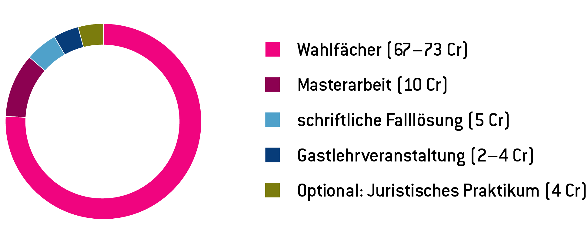 Das Masterstudium Rechtswissenschaft umfasst 90 ECTS-Credits und dauert in der Regel drei Semester. Das Masterstudium vermittelt die für eine anspruchsvolle juristische Tätigkeit oder eine juristische Weiterbildung erforderlichen methodischen Fähigkeiten und fachlichen Kenntnisse. Der Master of Law ist Voraussetzung für das Doktoratsstudium und den Erwerb des Rechtsanwaltspatents.
