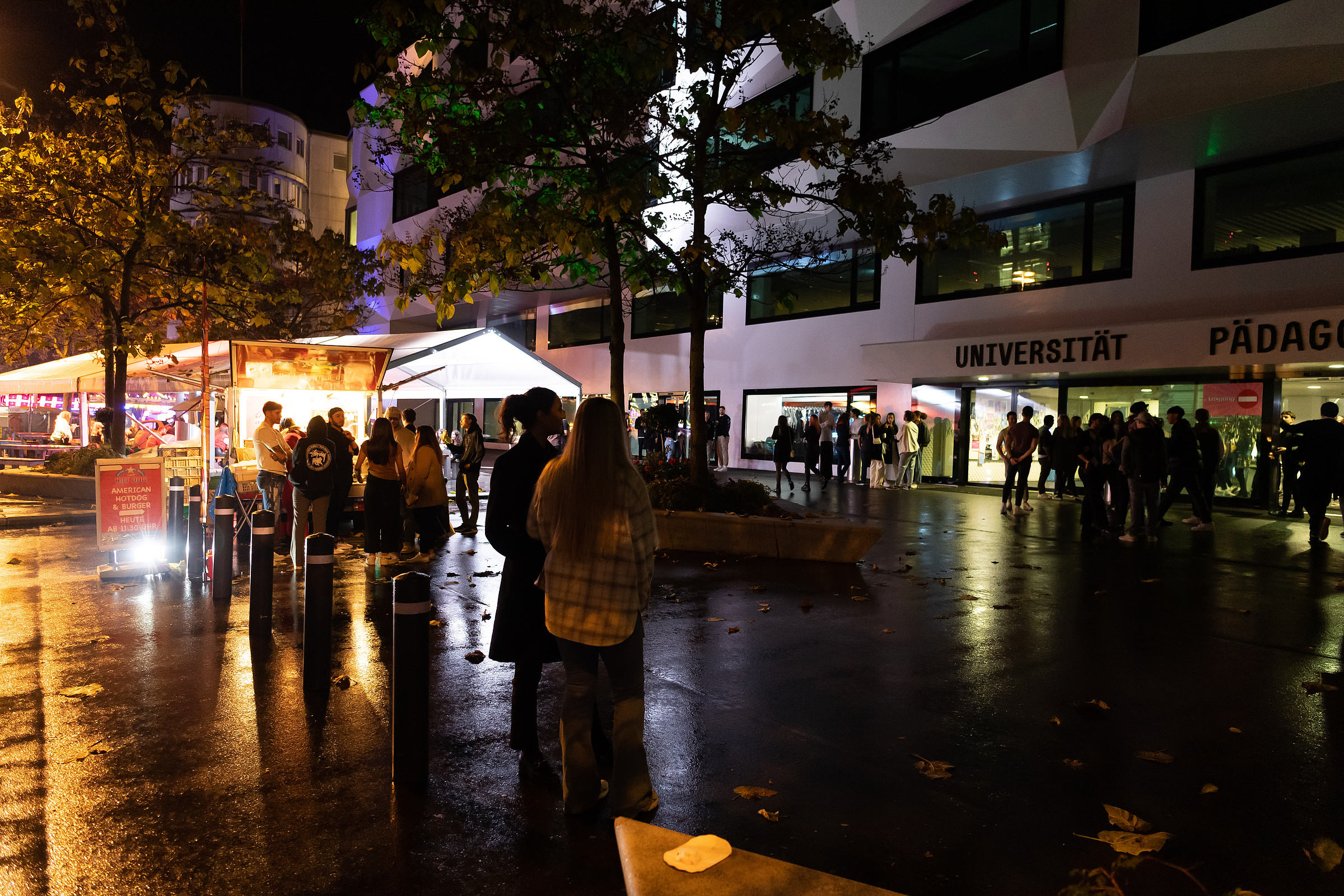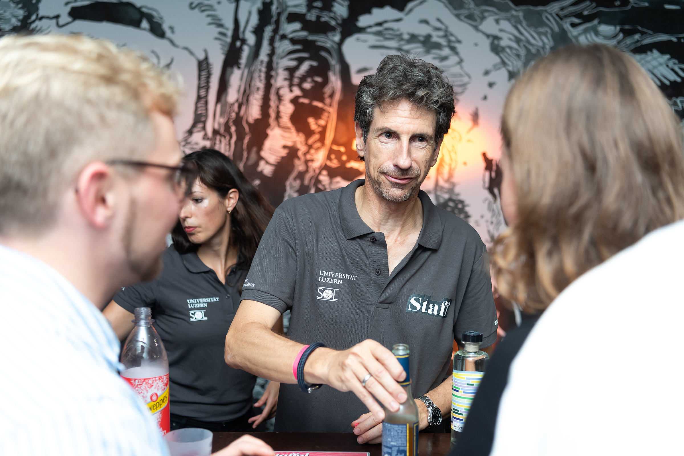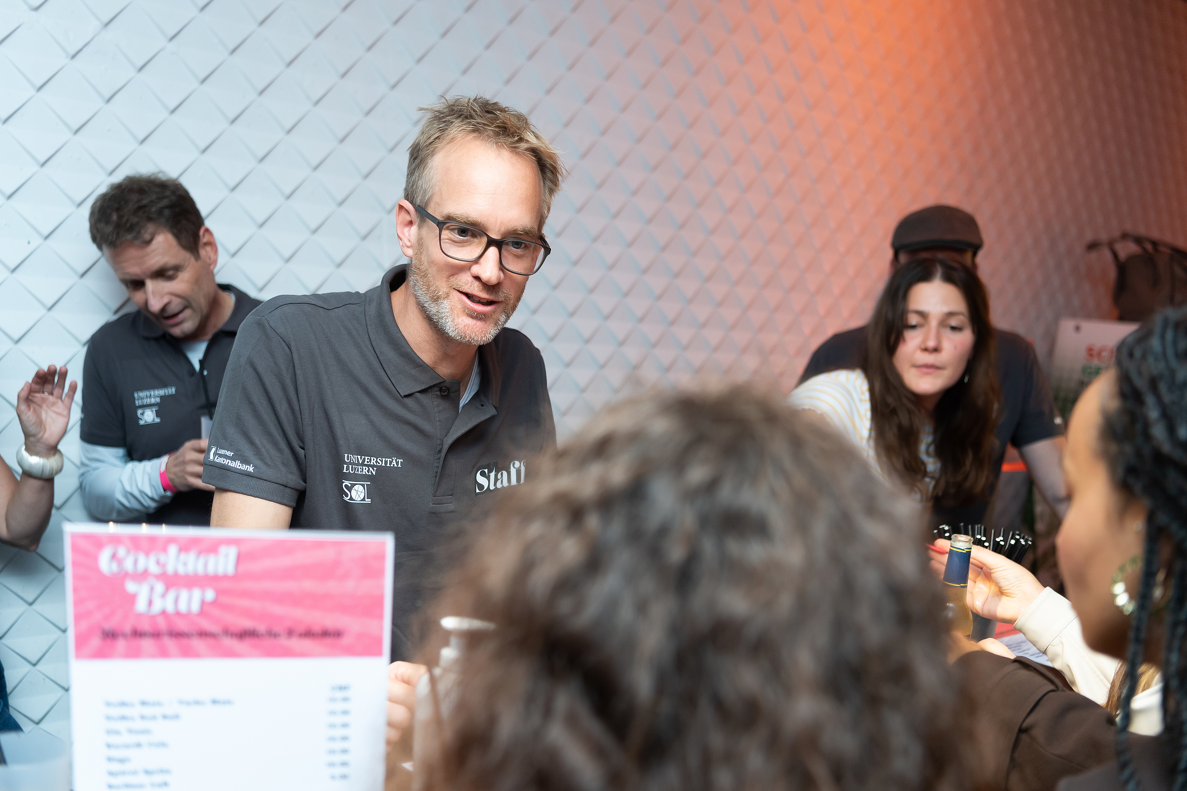 Mit verschiedenen Bars, an denen auch Professorinnen und Professoren, Dozierende und Mitglieder der Unileitung arbeiteten, Karaoke, Mini-Tischtennis und vielem mehr war für reichlich Abwechslung gesorgt. Und nicht zuletzt sorgte DJ Ecko für den passenden Soundtrack.