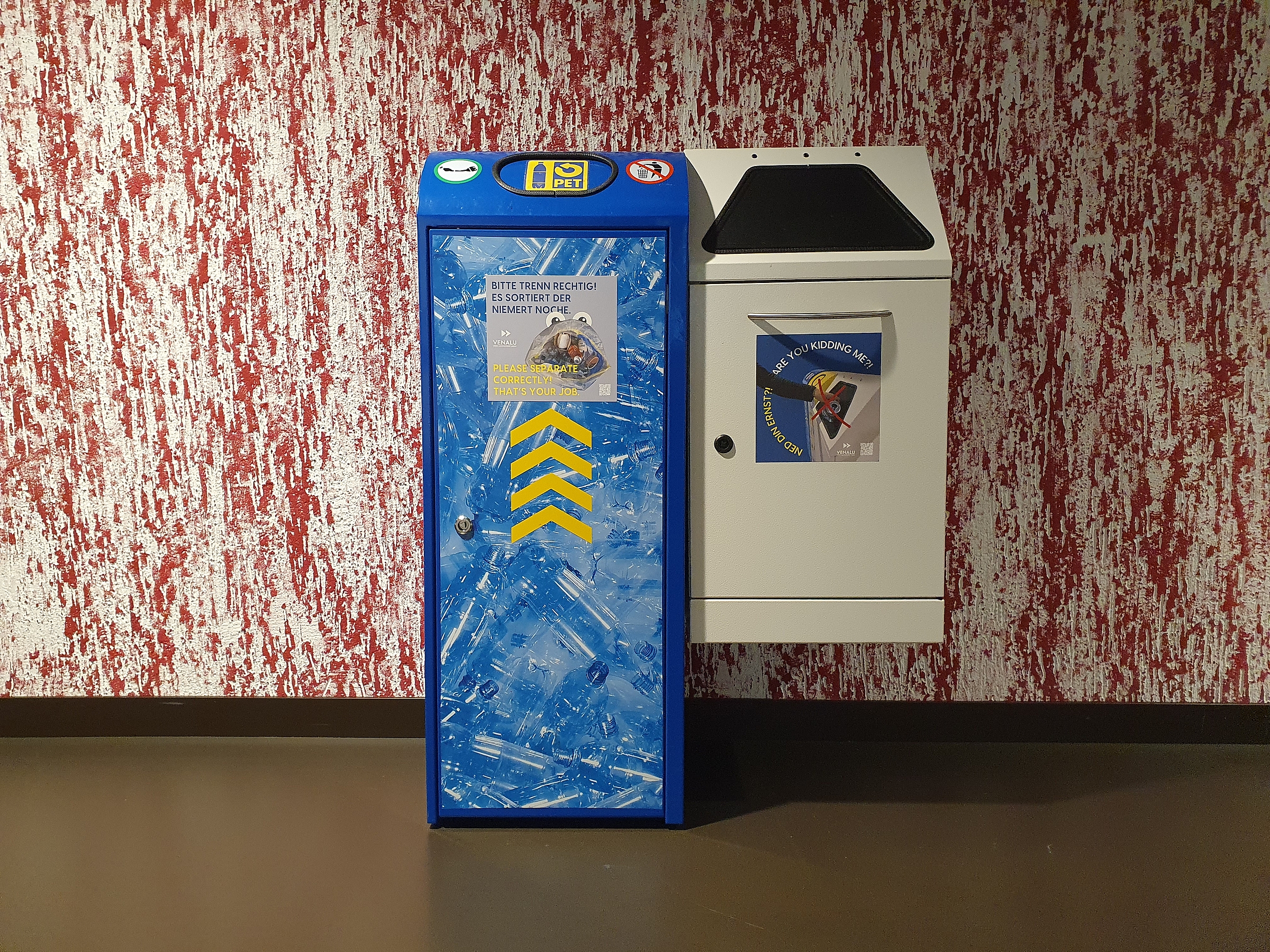 Seit dem Frühjahrssemester 2025 befinden sich neue Aufkleber an den PET- und Abfall-Behältern des Universitätsgebäudes. Diese sind Teil einer Sensibilisierungskampagne zum Thema Abfalltrennung des Vereins VENALU und der Universität Luzern.