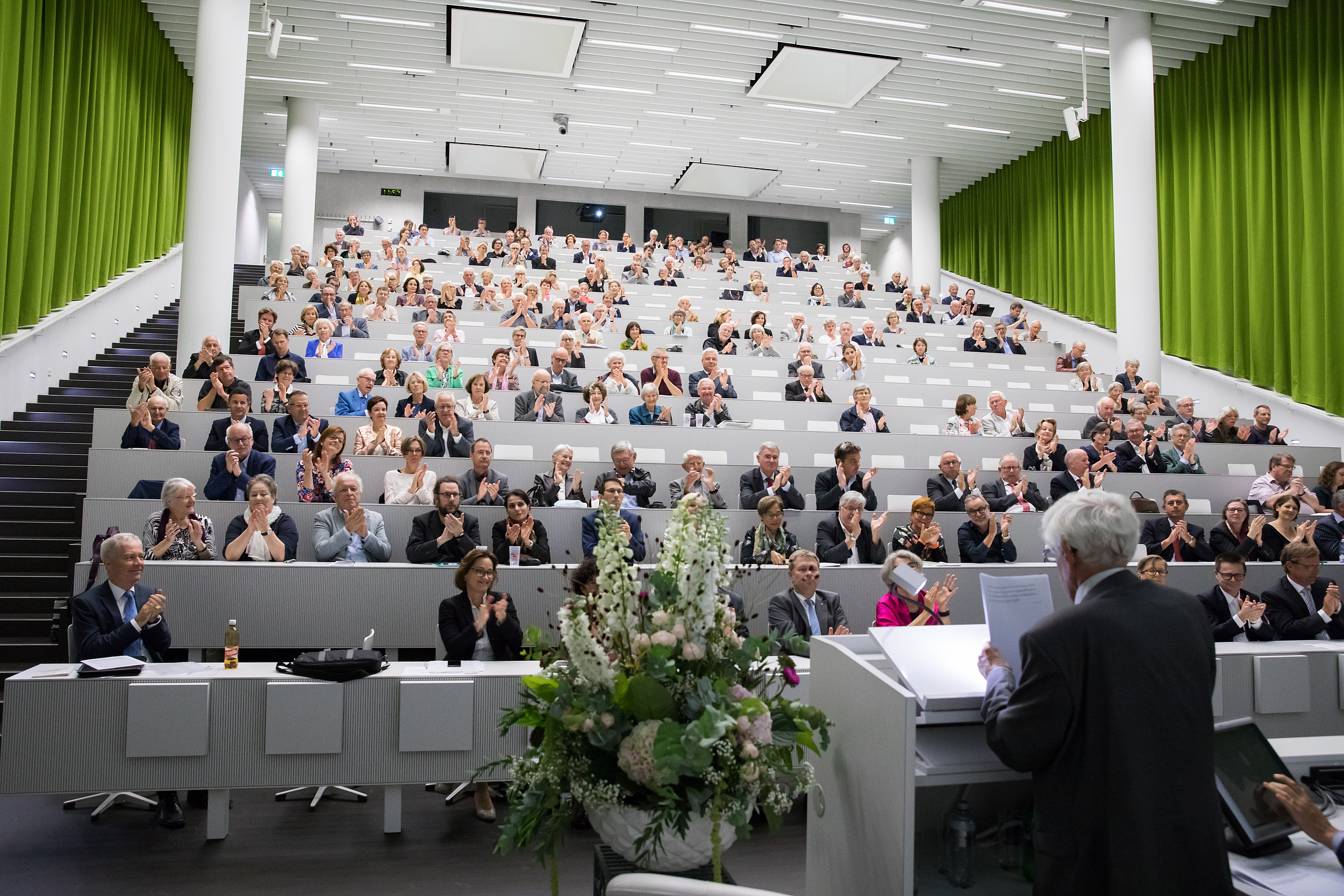 Am 14. September 2019 hat an der Universität Luzern ein Festakt stattgefunden. Dies anlässlich der Verleihung des Literaturnobelpreises an Carl Spitteler vor hundert Jahren. Dem Schriftsteller zu Ehren, der 32 Jahre in Luzern gelebt und gewirkt hatte, wurde der 250 Plätze fassende Hörsaal 9 im Untergeschoss zum "Carl Spitteler Auditorium" umbenannt. Ausserdem zeigt eine neue Wandmalerei zwischen den beiden Hörsälen 9 und 10 die stilisierten Konterfeis von Carl Spitteler (1845–1924) und seiner Frau Marie Spitteler-Op den Hooff (1863–1929). Auch wurden Informationstafeln angebracht. Op den Hooff hatte Carl Spitteler eine Existenz als Künstler in weitreichender Unabhängigkeit ermöglicht. Wie Rektor Bruno Staffelbach am Festakt ausführte, gibt es verschiedene Schnittstellen zwischen dem Leben und Werk des Autors und der Universität; auch solle Spittelers mit der 1914 gehaltenen Rede "Unser Schweizer Standpunkt" (Download pdf; ab S. 43 bzw. 23) bewiesener Mut in die Hörsäle hineinstrahlen.