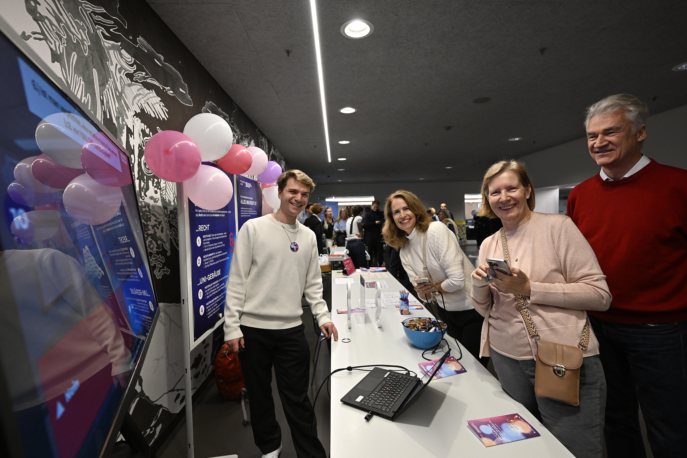 Den Gästen wurde ein vielfältiges Programm geboten, das spannende Einblicke in aktuelle Forschungsthemen, die Studiengänge und das Uni-Leben brachte. Vermittelt wurde dies in Ausstellungen, interaktiven Präsentationen, Kurzvorträgen, Gesprächsrunden und Führungen, aber auch in Form von Quiz, Spielen, kreativen und partizipativen Aktionen. Das Angebot stiess auf grosses Interesse und vermochte zu begeistern. Newsbeitrag zum Jubiläumsanlass