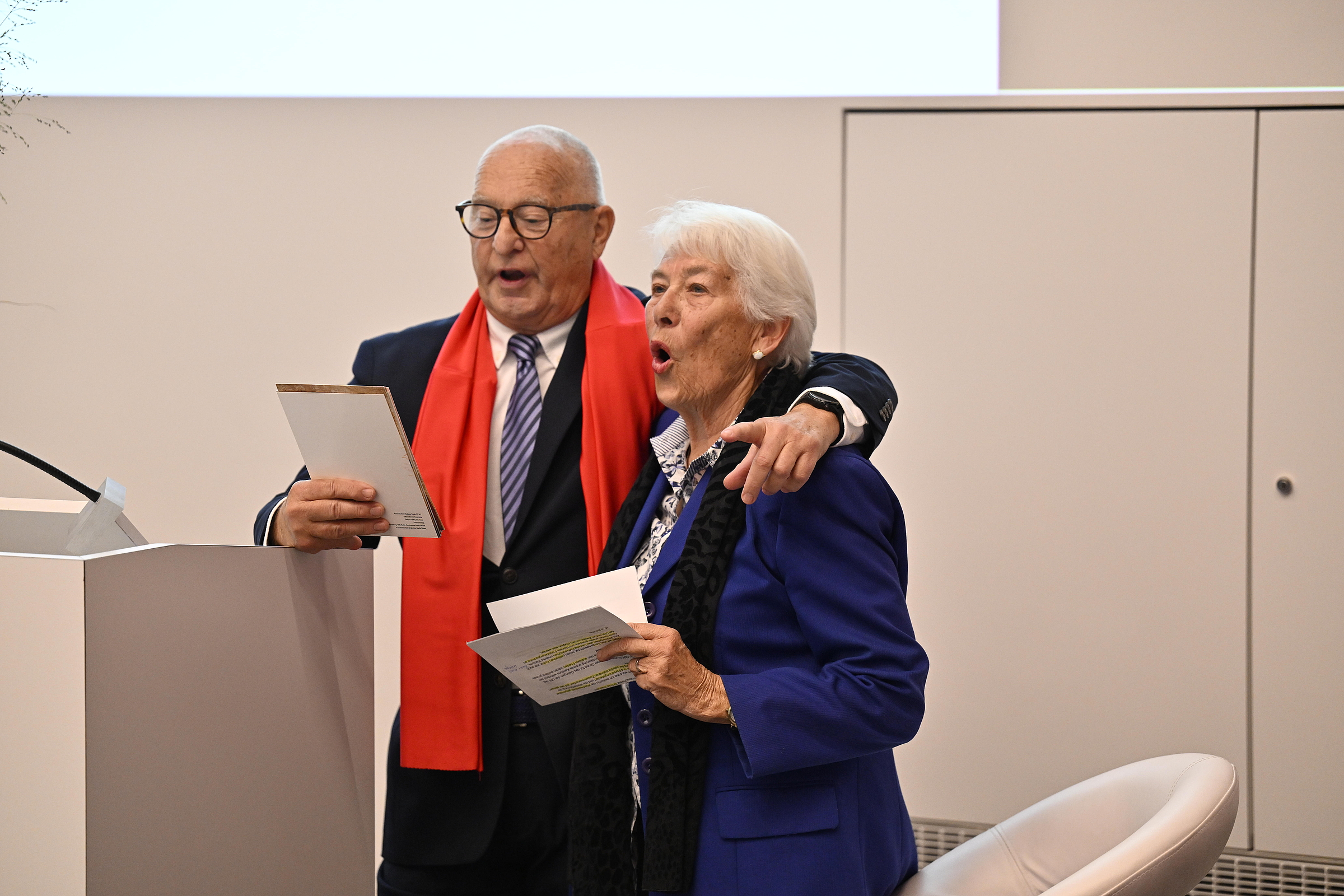 Am Festakt überbrachten Kanton und Stadt sowie die beiden anderen Hochschulen auf dem Platz Luzern Grussbotschaften. Mittendrin und von hoher Symbolhaftigkeit: ein roter und ein schwarzer Schal.