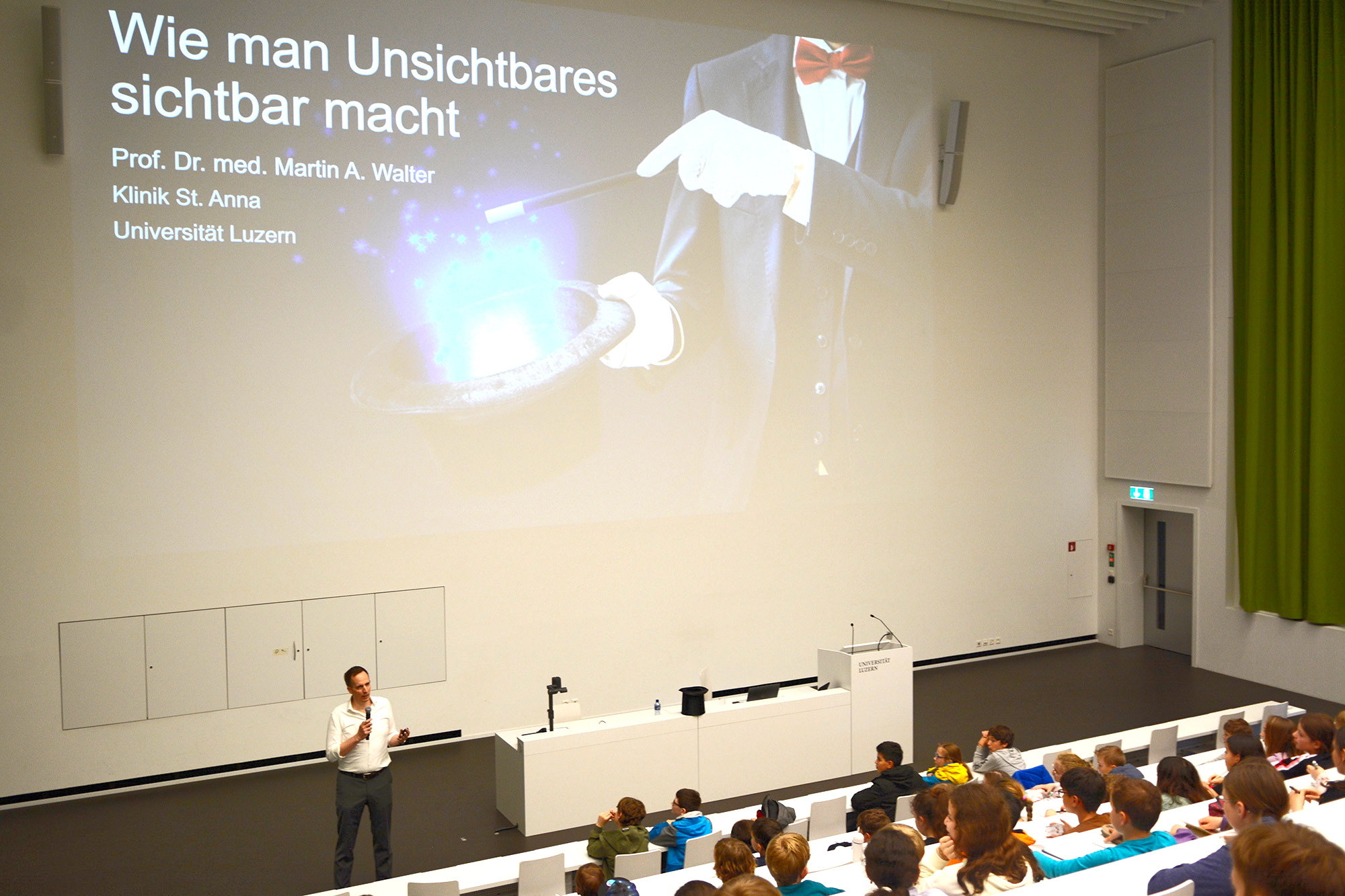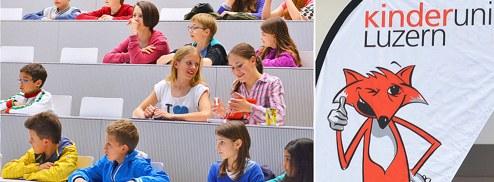 Die Kinderuni ist fast wie eine Universität für Erwachsene: Professoren und Professorinnen reden über Themen, zu denen sie viel wissen und sogar Bücher geschrieben haben. Ihr seid die Studentinnen und Studenten, kommt an die Uni, in den Hörsaal, hört zu und könnt auch Fragen stellen. Wir möchten euch die Türen öffnen zur Welt der Wissenschaft und euch Themen näher bringen, zu denen an der Uni Luzern geforscht wird.